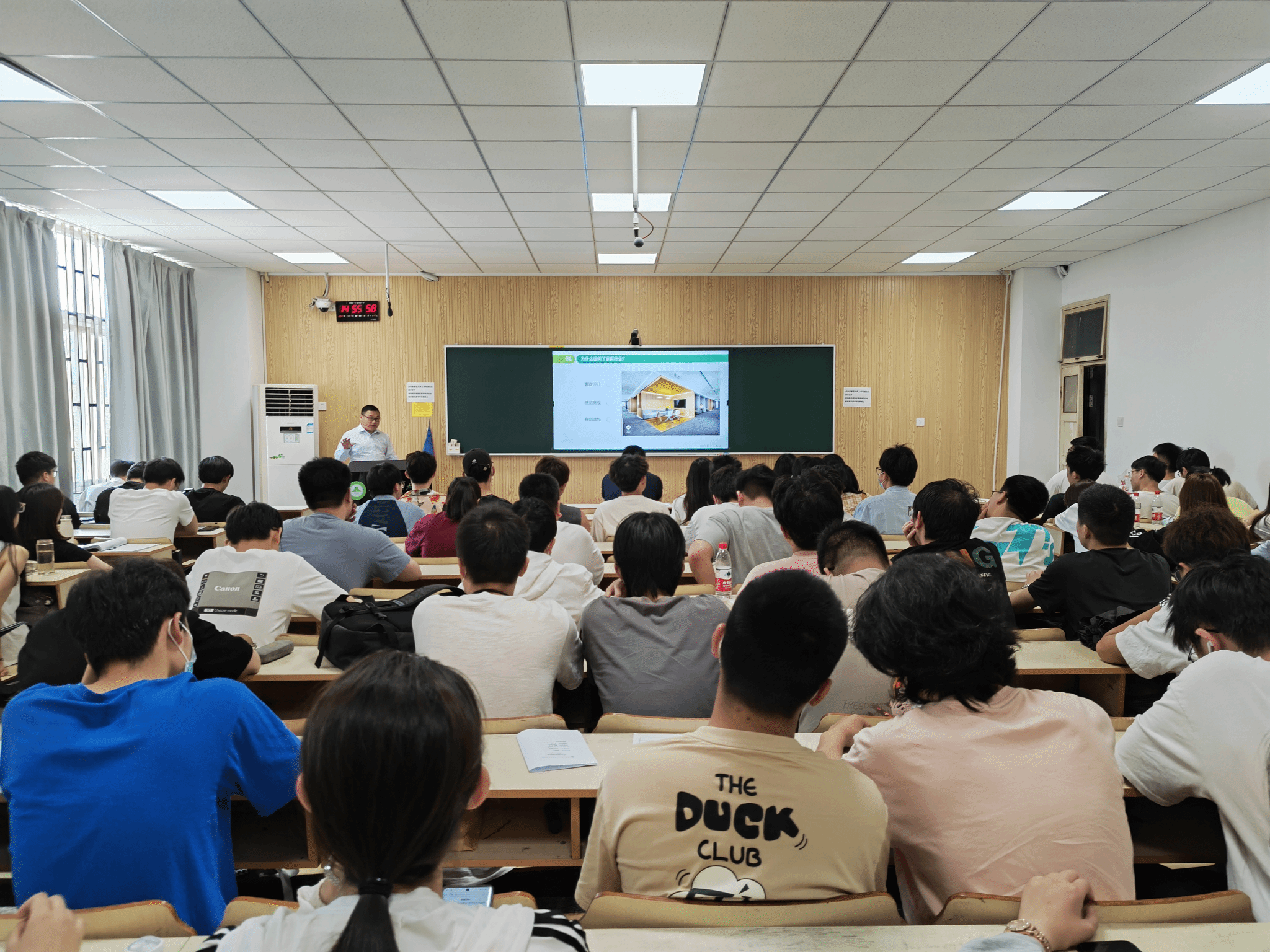 王华结合自身经历将职业规划道路细化为七项,逐一向同学们介绍职业规划的重要性以及做好职业规划的方法。他指出,做好职业规划要明确目标方向、有计划开展学习并敢于尝试挑战。刘帅将职业规划总结为“人、事、物、势、客”五字纲要,并一一讲解。两位校友的精彩演讲带动了同学们对职业规划的思考,引发了同学们积极的讨论。针对同学们对于职业规划以及木材行业发展的问题,两位校友给出了详尽的解答,并鼓励同学们努力学习,为我国木材行业发展添砖加瓦。
