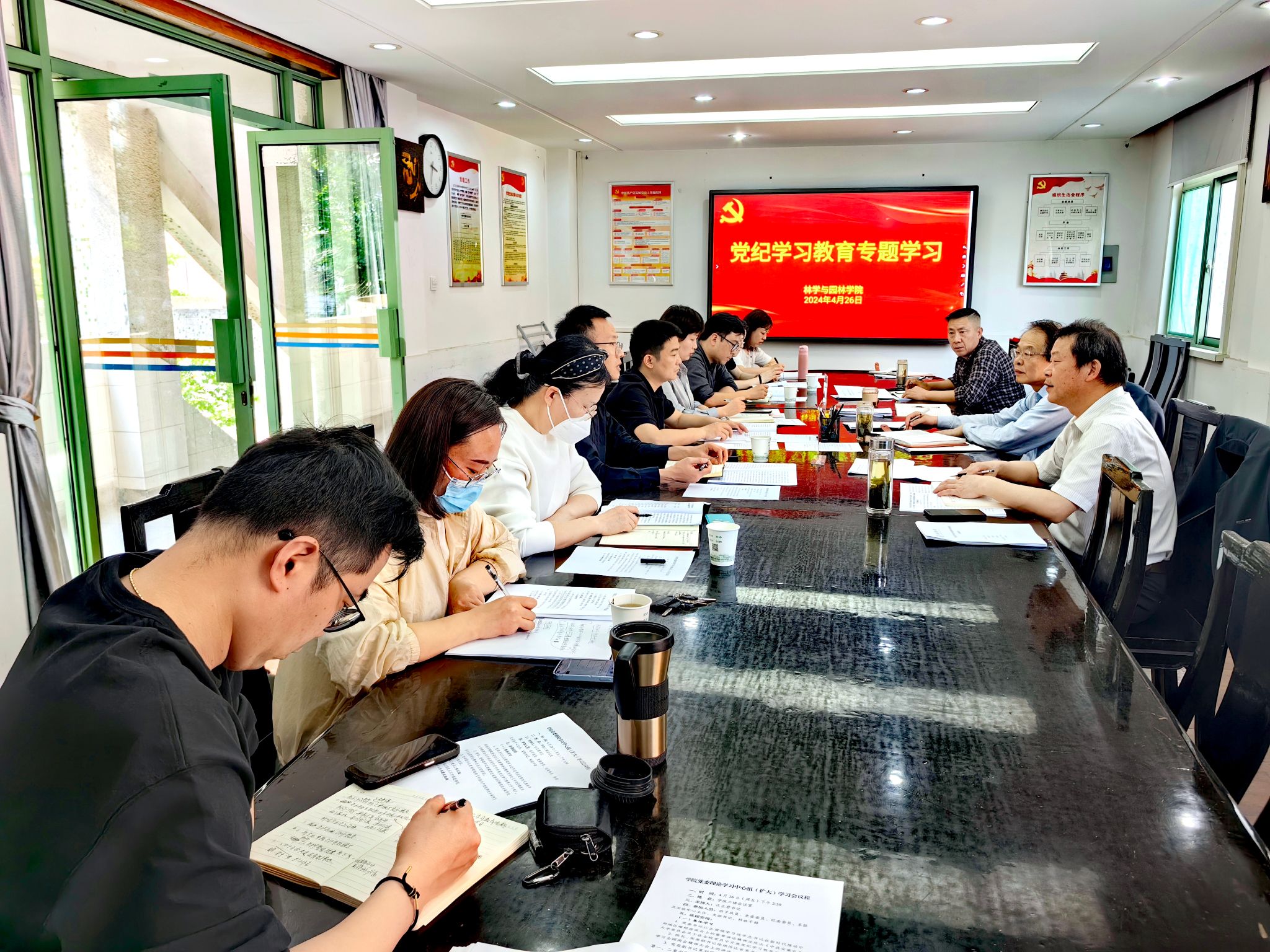 本网讯 4月26日,林学与园林学院在林学楼二楼会议室召开党委理论学习中心组(扩大)会议。学院领导班子成员、党委委员、纪委委员、系部主任、师生党支部书记参加会议,会议由党委书记江正君主持。