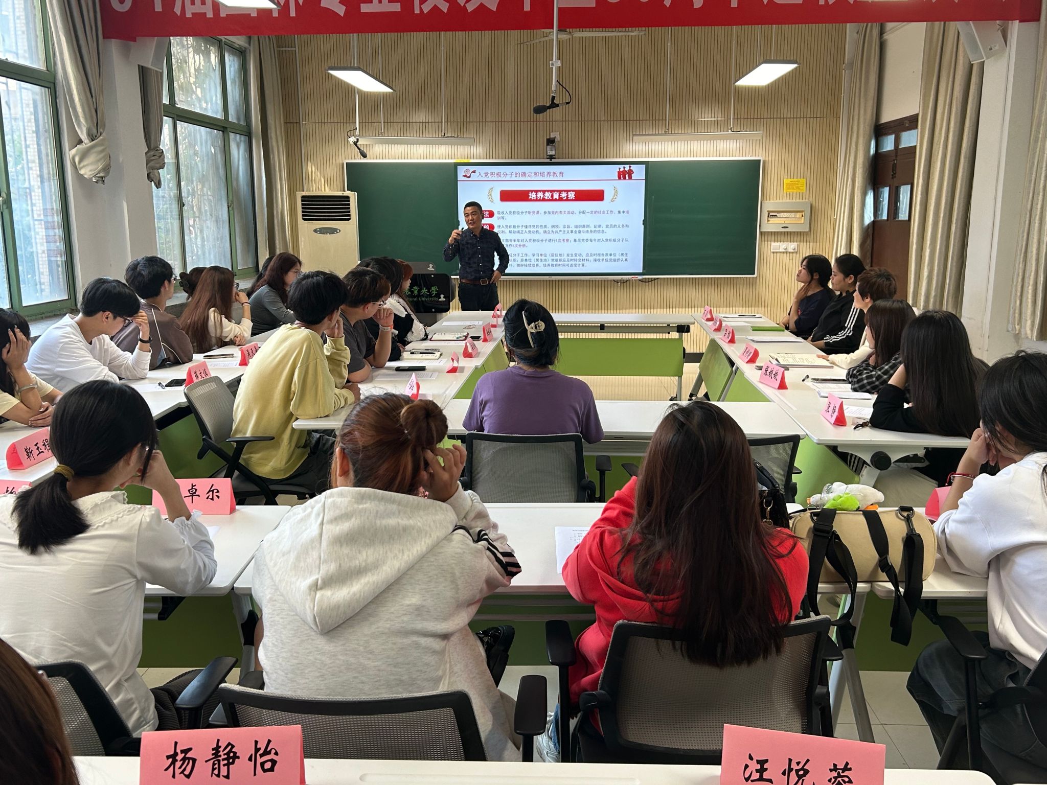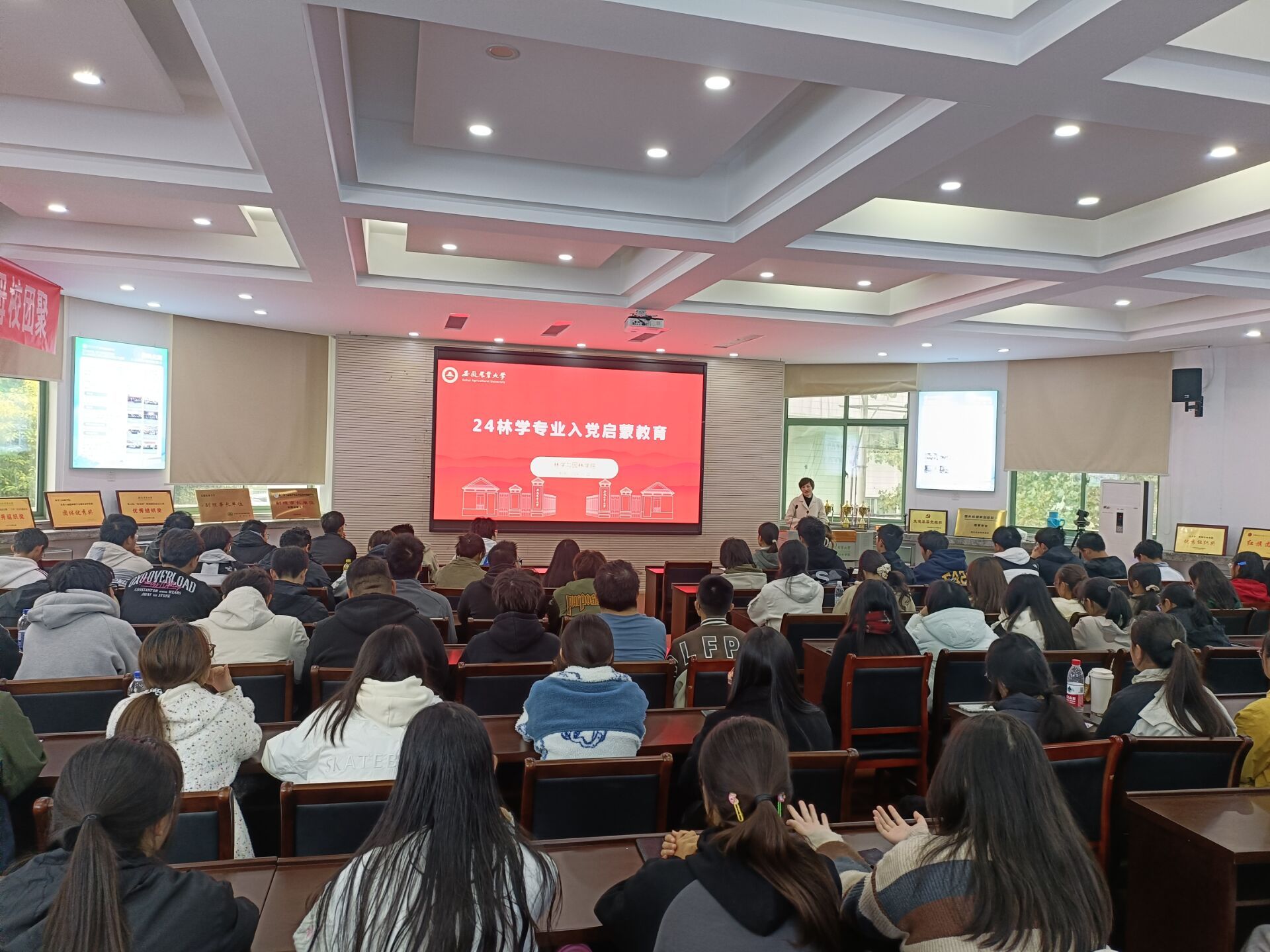本网讯 为进一步激发青年大学生爱党爱国的政治热情,增进对党的基本知识的认识,帮助青年学子知党、信党、入党,引导广大新生听党话跟党走,了解入党流程、端正入党动机,激发入党积极性,并为新生在政治上积极进取创造必要的条件,按照早教育、早发现、早培养的原则,结合林学与园林学院实际,开学以来,学院党委在2024级新生中开展了新生入党启蒙系列教育。