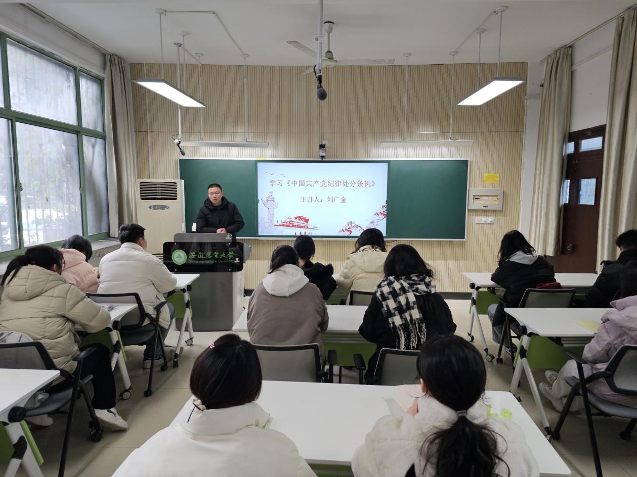 12月11日,茶树生物学与资源利用国家重点实验室副主任刘广金走进林学与园林学院,围绕《中国共产党纪律处分条例》相关内容,为该院学生党支部主要骨干讲授了一场专题党课。