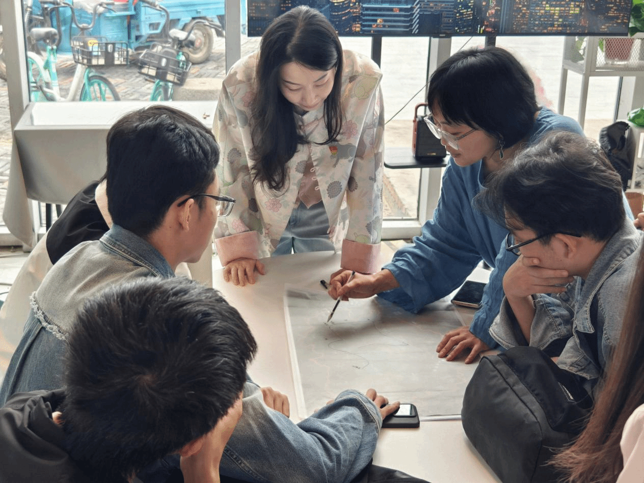 午后,团队运用无人机技术对重点区域航拍,获取整体景观格局与空间关系数据。航拍影像与地面调研相互印证,为后续规划设计提供科学依据。“无人机技术的应用,有效弥补了传统调研在宏观视角上的不足,使规划分析更为全面精准。”学生苏欣瑜表示。调研过程中,马郢村志愿者与村民也积极协助,为师生介绍村庄发展脉络与实际诉求。教师刘红云、金晶全程指导,鼓励学生运用AI等新技术进行数据分析,并强调规划应统筹生态保护与文化传承,实现可持续发展。