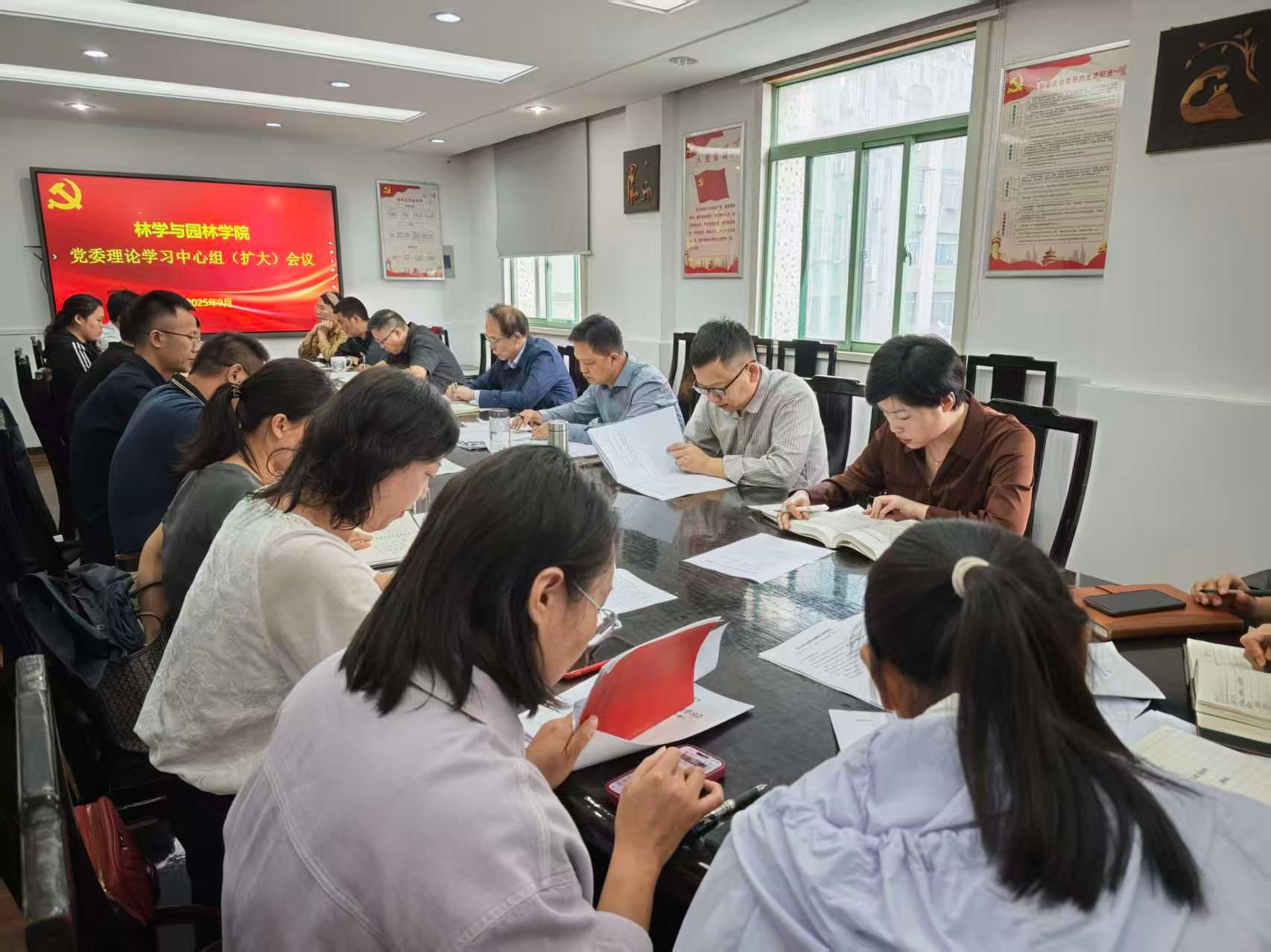 本网讯 9月22日上午,林学与园林学院在林学楼二楼会议室召开党委理论学习中心组(扩大)学习会议。学院领导班子成员、党委委员、纪委委员、各系部主任、党支部书记、科级干部参会。会议由学院党委书记江正君主持。