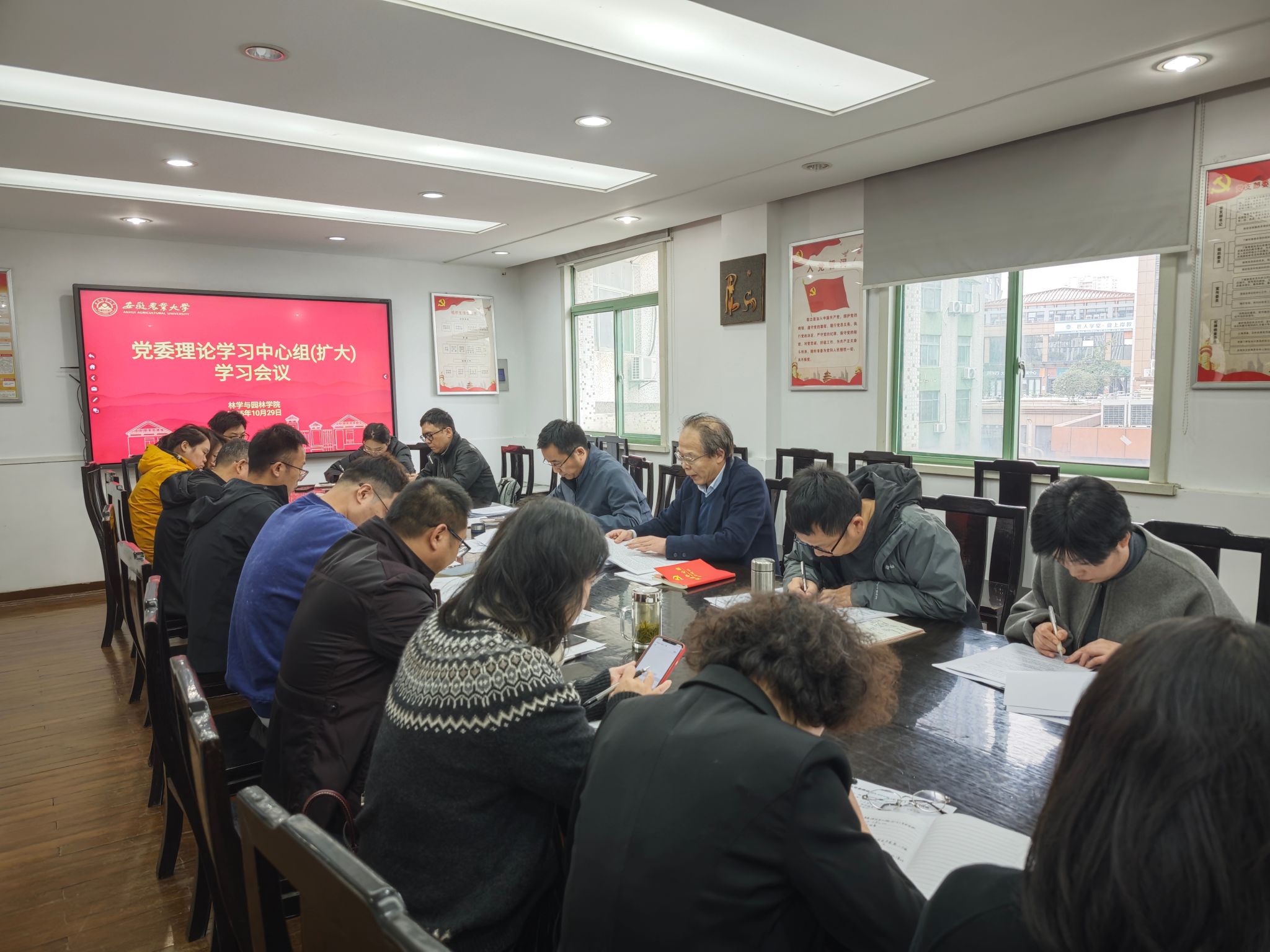 本网讯 10月29日下午,林学与园林学院在林学楼二楼会议室召开党委理论学习中心组(扩大)学习会议。学院领导班子成员、党委委员、纪委委员、各系部主任、党支部书记、科级干部参加会议。会议由学院党委书记江正君主持。