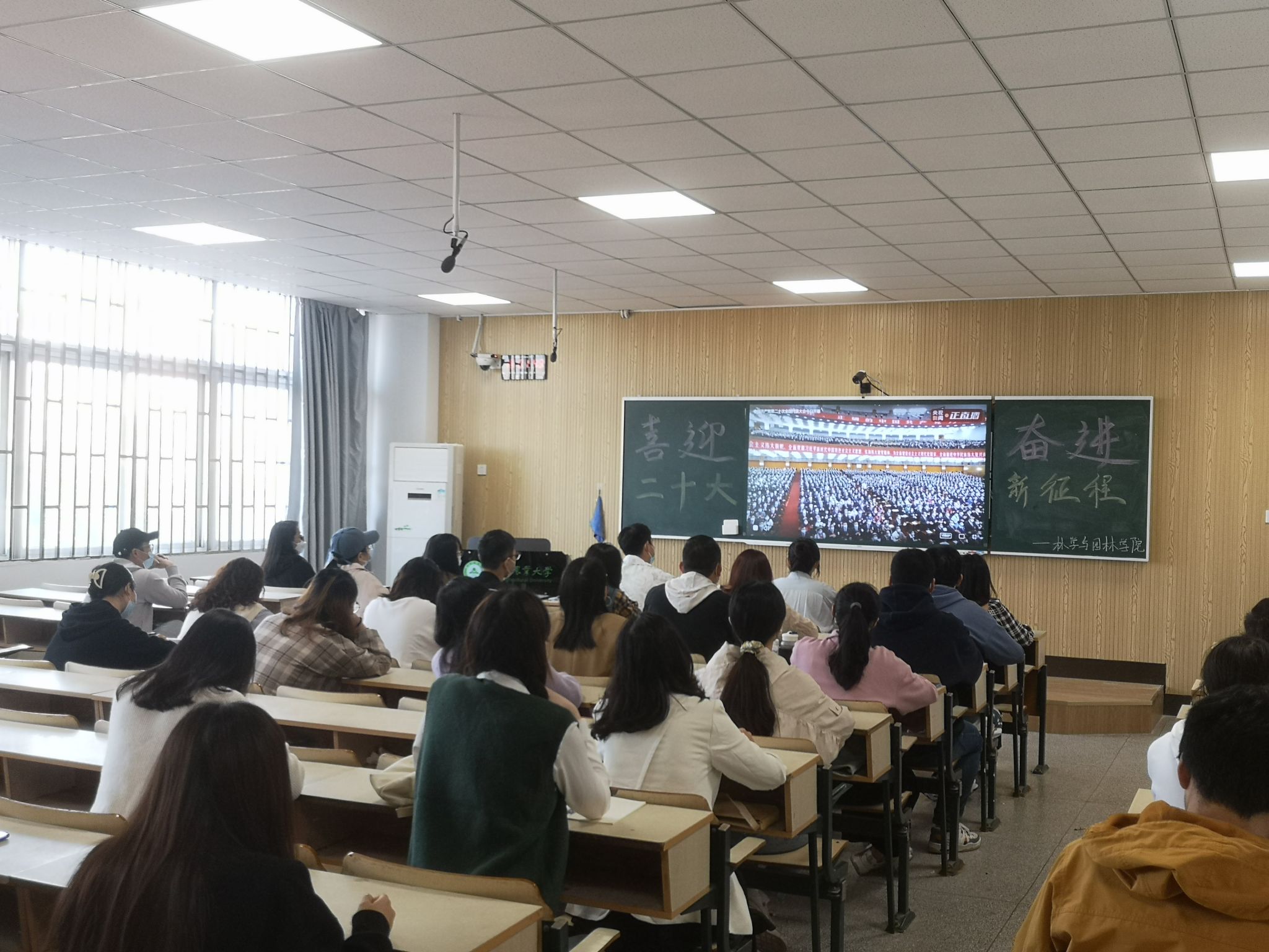 在一楼报告厅和学院智慧教室,学院部分学生党员、学生骨干代表集体观看了开幕会直播。跟随习近平总书记的报告,同学们认真观看,深切感悟,了解过去五年我国在经济、政治、社会、文化、生态环境等各个方面的发展状况以及未来祖国的发展蓝图,接受了一次精神上的洗礼。