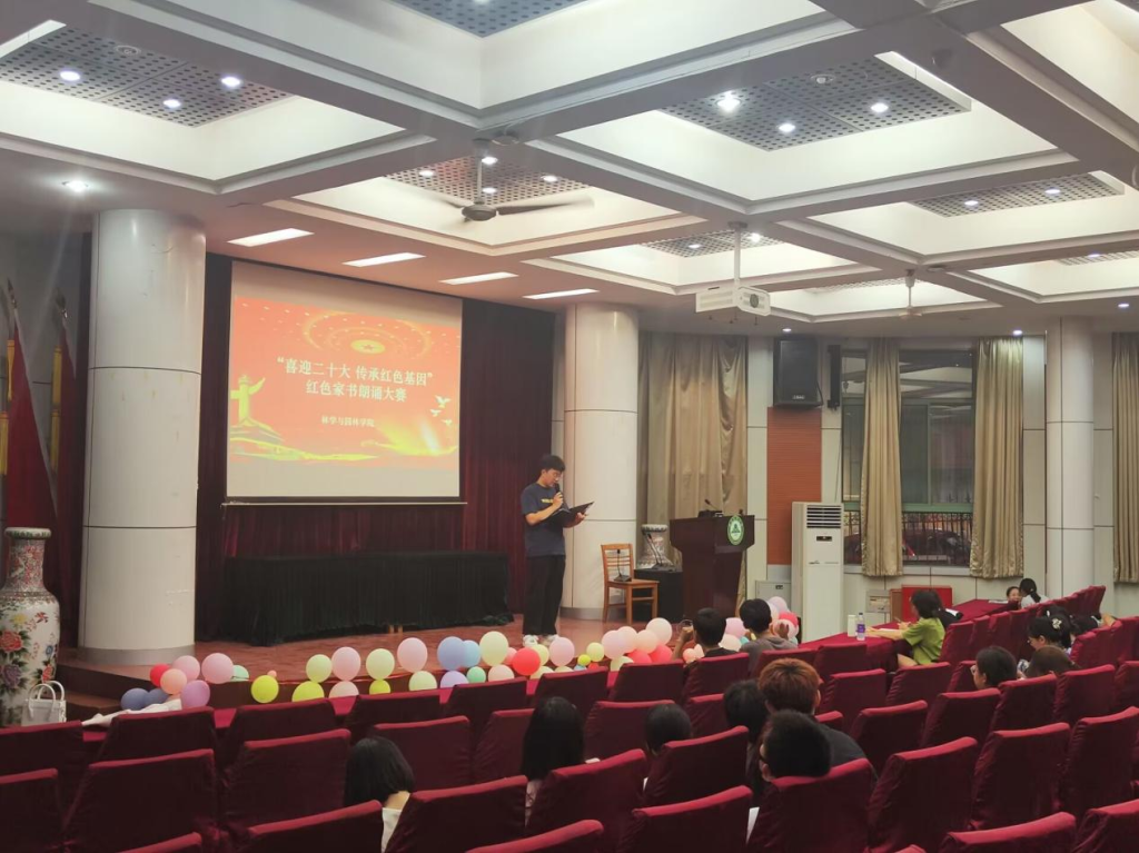本网讯 为深入学习习近平新时代中国特色社会主义思想精神,弘扬革命精神、重温革命历史、缅怀革命先烈,赓续“听党话、感恩党、跟党走”的红色基因,增强团队凝聚力和向心力,团结引领广大团员青年以昂扬风貌和优异成绩迎接党的二十大,激励团员青年建功新时代、奋进新征程,9月17日晚7:00,我院“喜迎二十大 传承红色基因”红色家书朗诵大赛在林学楼一楼报告厅召开,本次比赛由刘丰瑞同学主持。