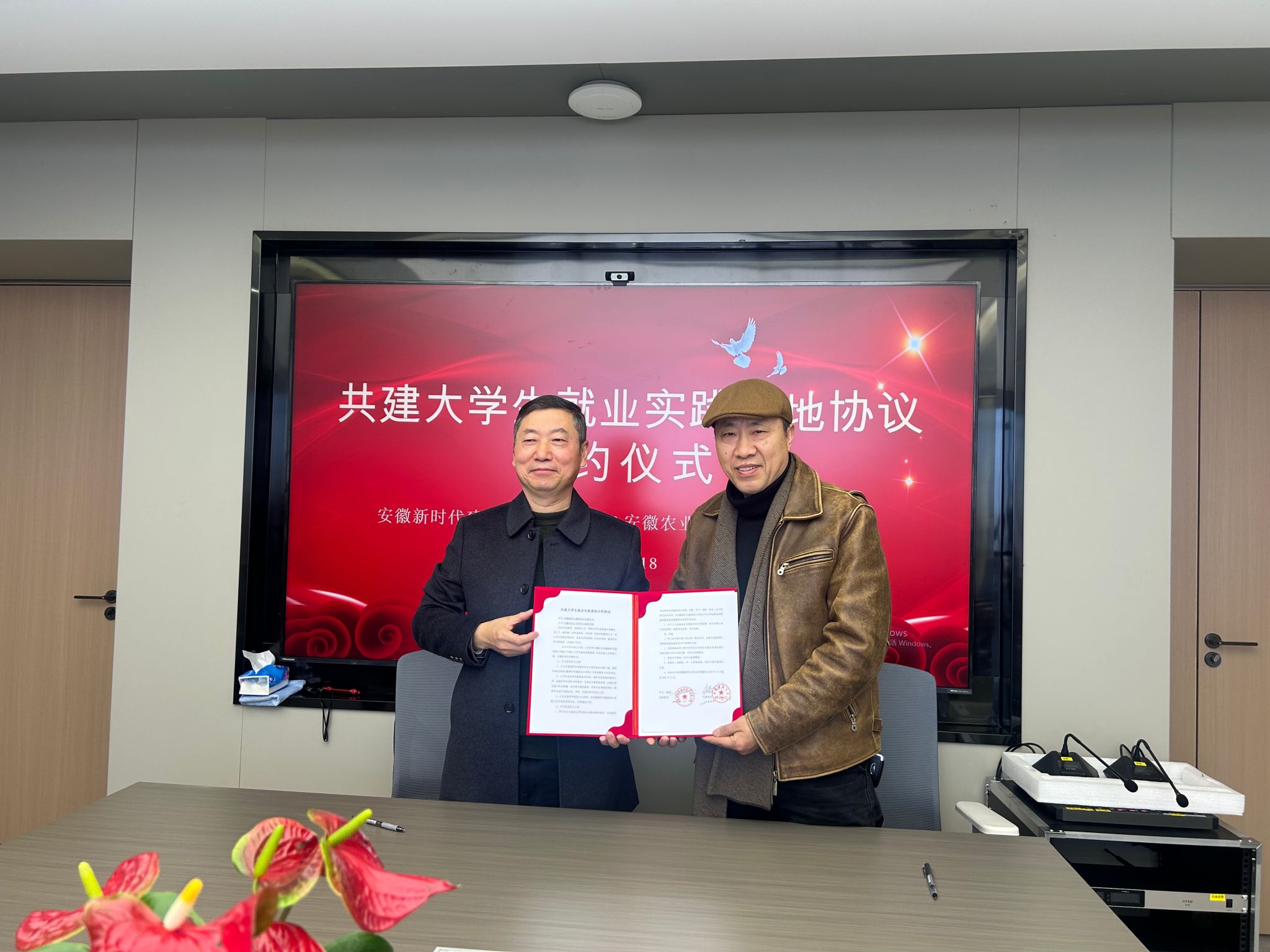 方传斌、陆小彪代表双方共同签订了大学生就业实践基地协议。(胡先业 编辑/胡先业 预审/夏利明 审核/江正君)