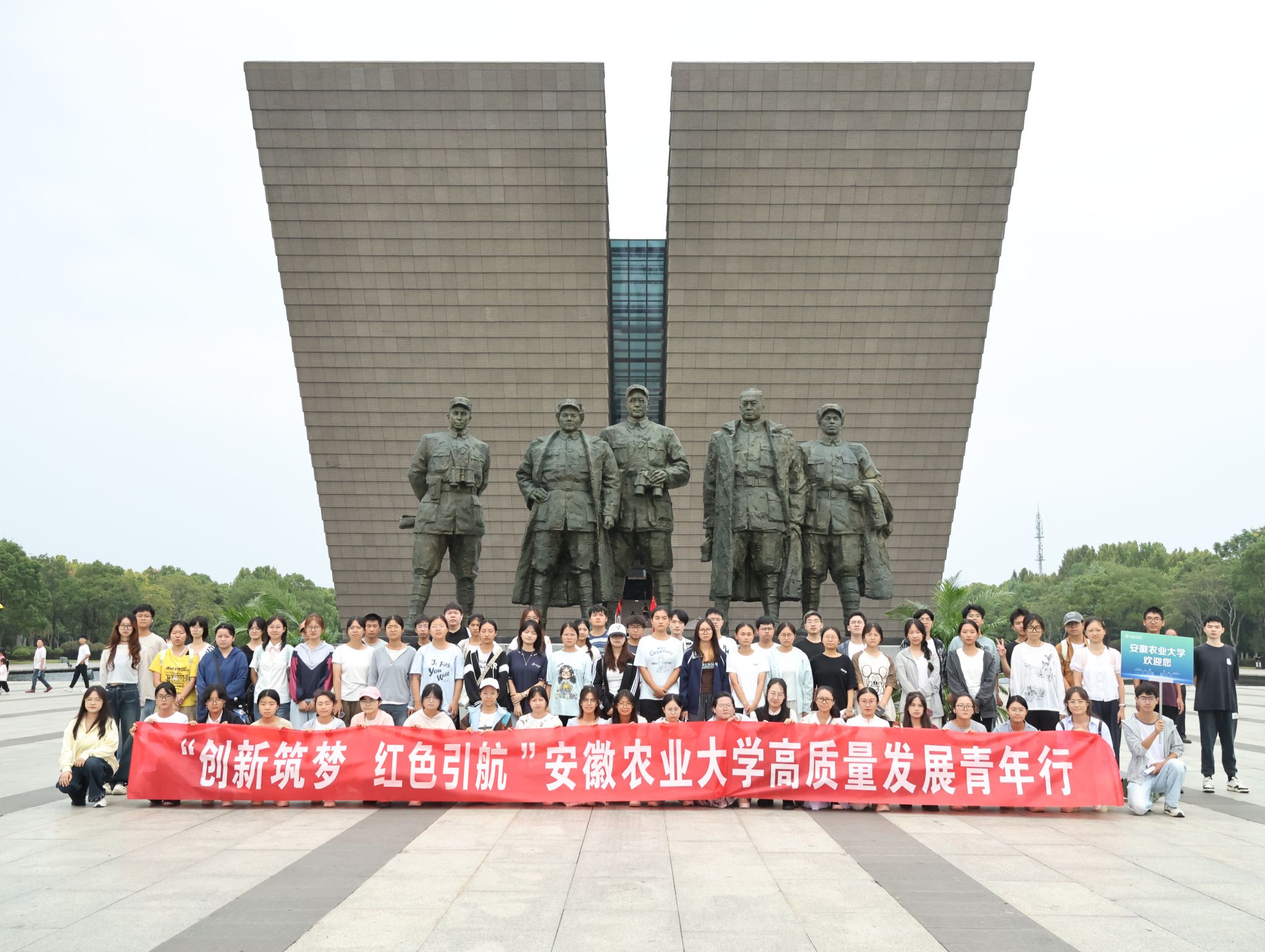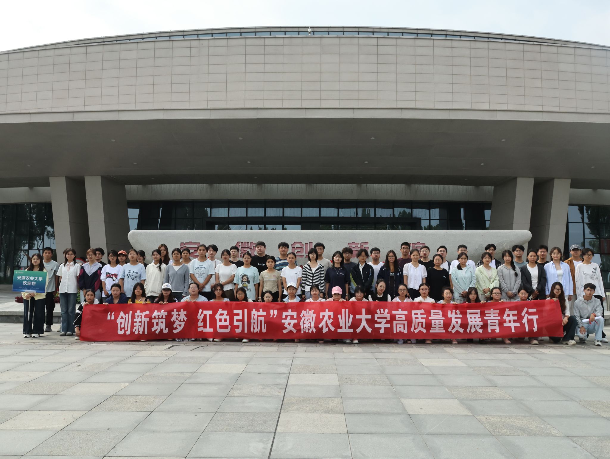本网讯 金秋送爽,丹桂飘香。在庆祝新中国成立76周年的喜庆氛围中,为引导广大青年学子深刻领会高质量发展内涵,激发创新热情,传承红色基因,10月2日上午,由校团委主办、林学与园林学院承办的“创新筑梦 红色引航”高质量发展青年行活动成功举行,活动组织全校假期留校的72名同学,先后前往安徽创新馆与渡江战役纪念馆进行实践学习。
