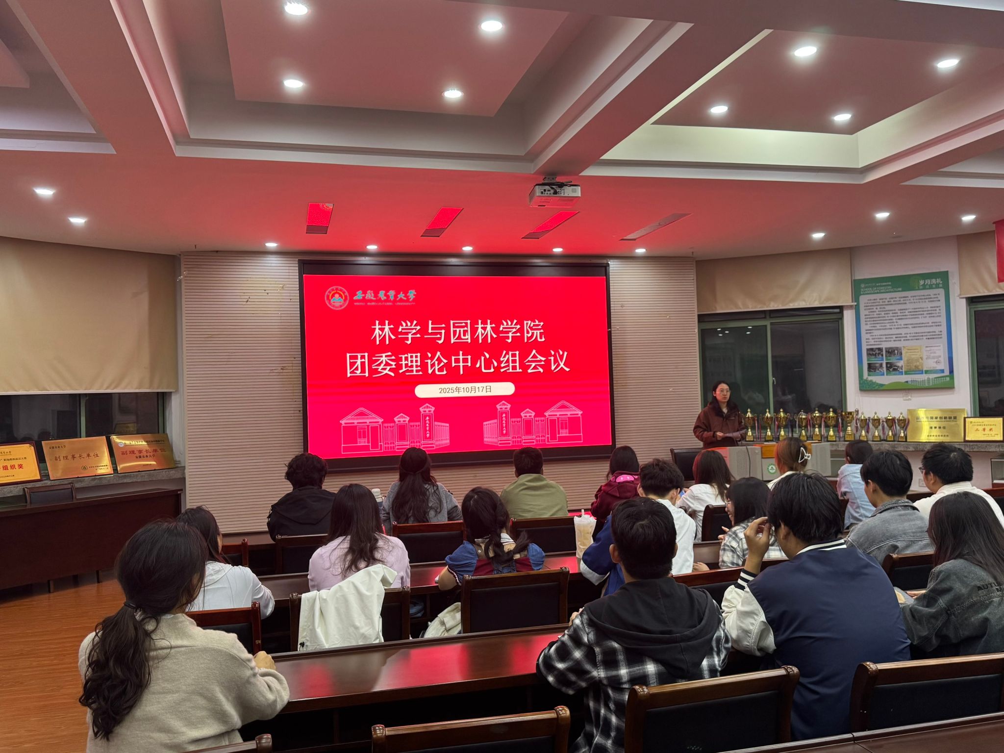 本网讯 10月16日晚,林学院与园林学院在林学楼二楼报告厅召开团委理论学习中心组会议,学院团委老师、院团委委员及团员代表参加会议。