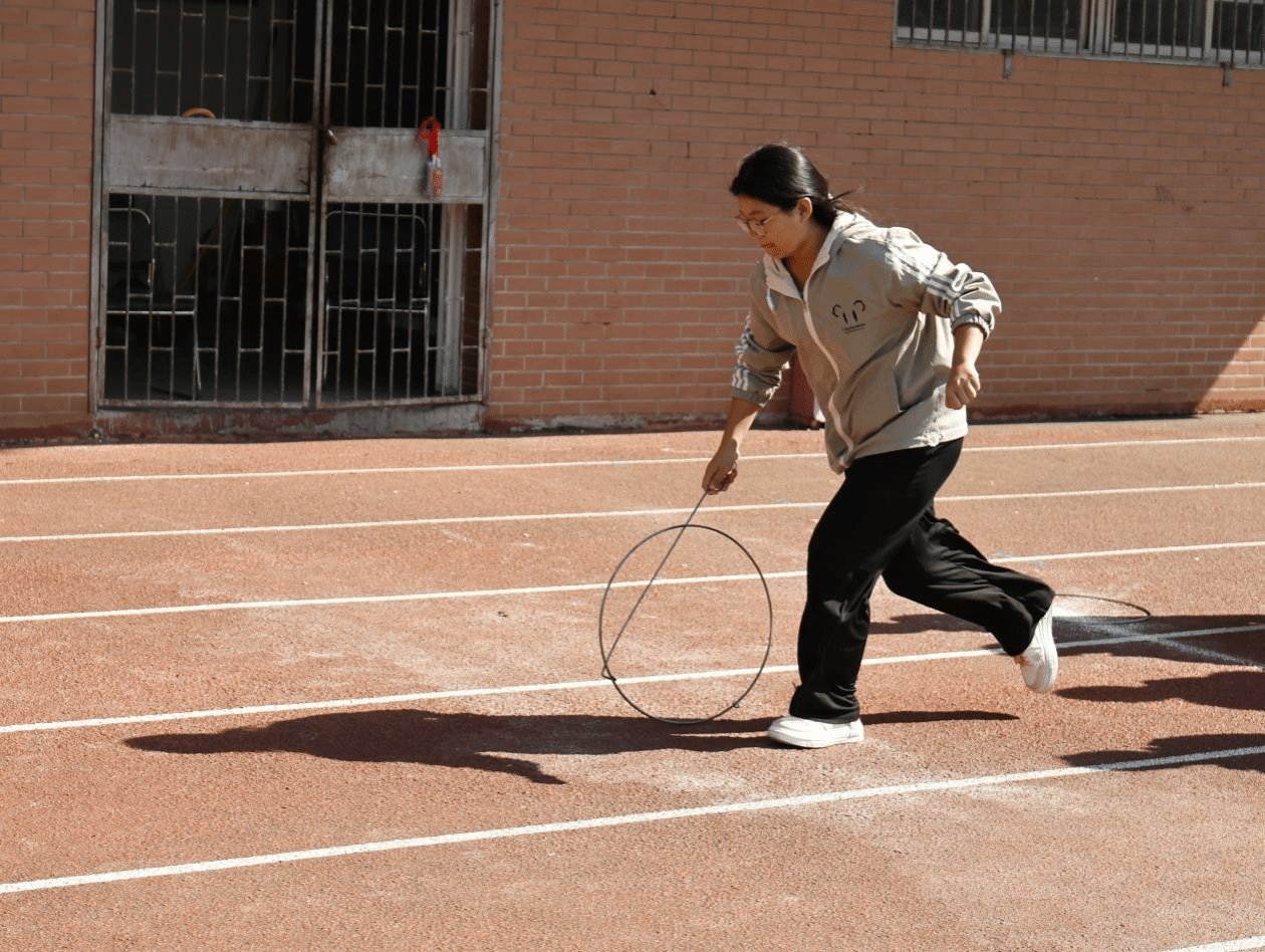 上午九时,滚铁环接力赛在东南跑道拉开帷幕。学院代表队于第三组登场。比赛过程中,首棒选手弯道转换时虽出现轻微偏离,但选手迅速调整铁钩角度,及时稳住方向,展现出良好的临场应变能力。最终,队伍以1分28秒的优异成绩完赛,位列总排名第四。