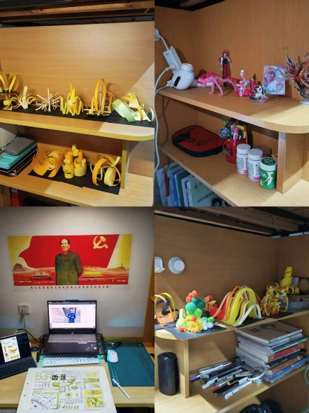 寝室装饰大赛大家在在个性化与创意中培育和谐寝室文化。G16#501寝室每个床位风格迥异,简约务实、二次元、传统文化、幽默生活态度和谐共存,丰富有趣X5#115寝室则巧妙利用柜子拐角,打造出兼具收纳与休憩功能的静谧角落。