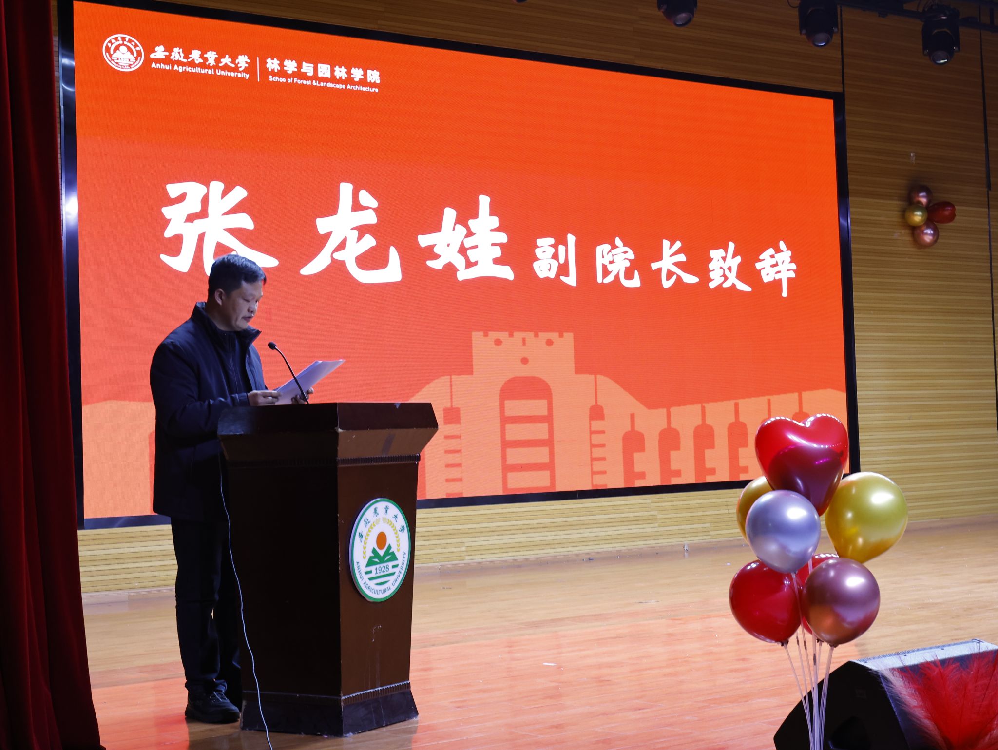 学院院长张龙娃在致辞中充分肯定了一年来学生工作成效,点赞每一位奋力拼搏的林院学子。他指出,新的一年即将到来,站在新的起点,希望同学们坚定信仰,胸怀“国之大者”,自觉将个人理想融入国家发展当中;坚持知行合一,既要夯实理论根基,也要主动走进山水林田,在广阔天地中砥砺真知;坚持勇于创新,紧盯科技前沿与国家战略需求,在种质创新、生态修复、智慧林业等领域大胆探索、勇于突破。