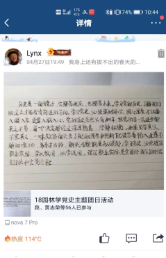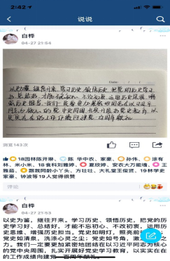风雨征程今重历,红心映日且看我。学院各班级团支部积极组织青年团员转发专业官Q动态、附加自己的感想、学习并拍摄学习党史的学习照片进行网络宣传、每个同学手写有关学习党史及党的发展过程的感想、召开有关班会进行集体学习党史等,以饱满的热情和更强的斗志,在新征程上谱写新时代的青春之歌。