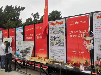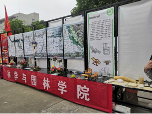 本网讯 为迎接建党一百周年,培养学生科技创新精神,展现新时代大学生风采。5月12日,林学与园林学院于学校大礼堂门前将学生的劳动技能成果展出。