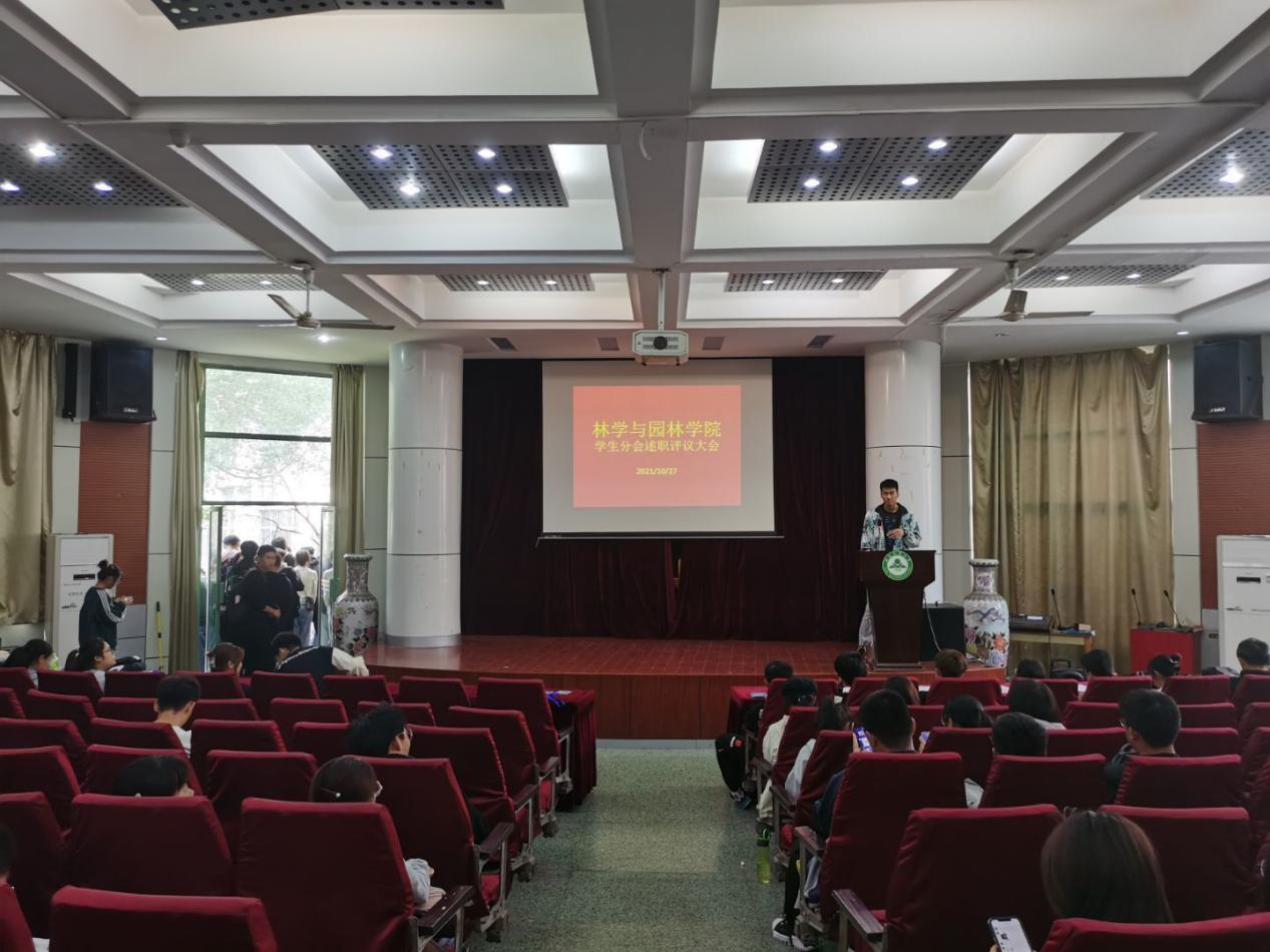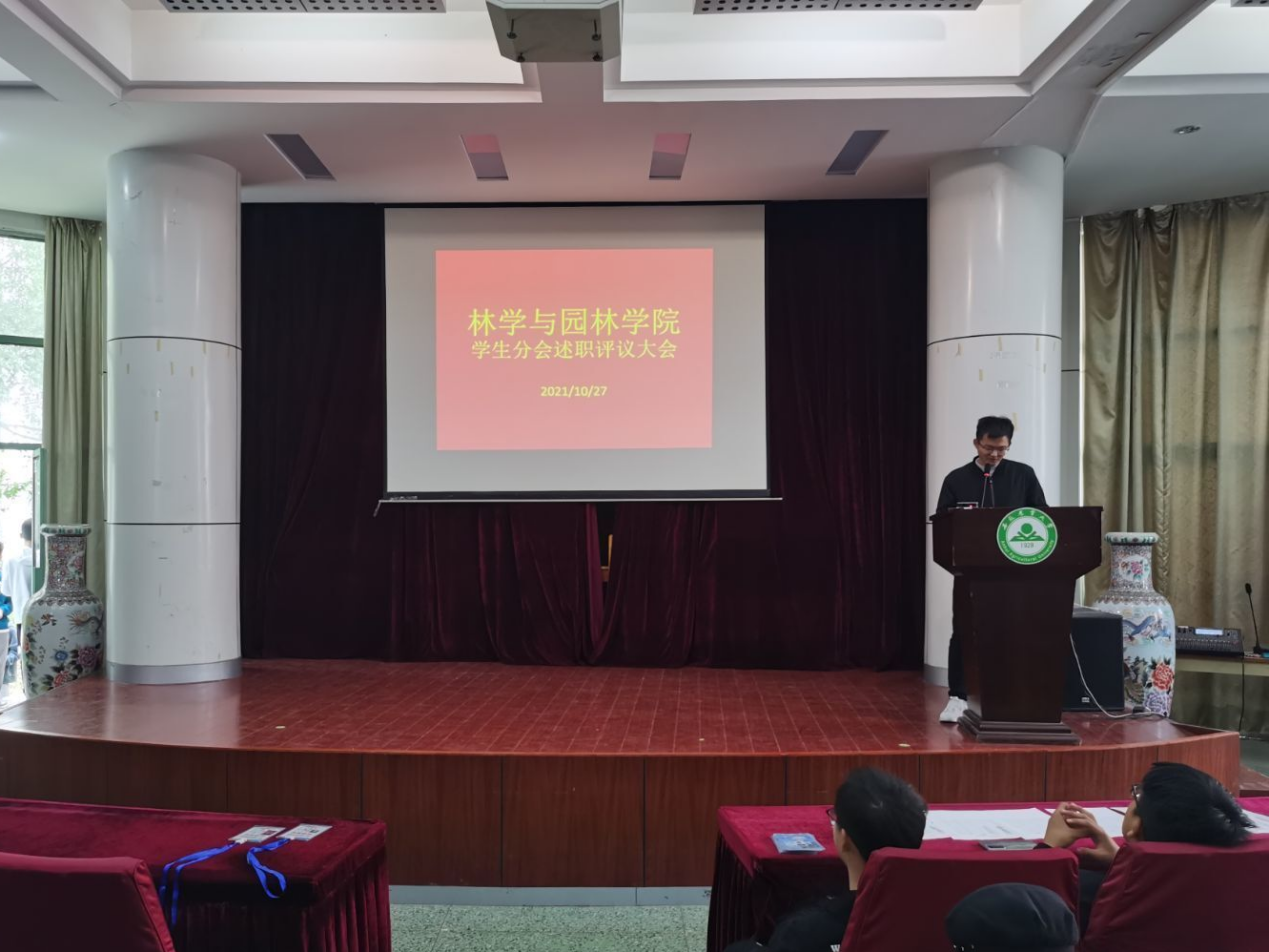 本网讯 10月27日中午林学与园林学院于在林学楼一楼报告厅举办了“林学与园林学院第四十四届学生分会述职评议大会”,出席本次会议的有团委老师,学生分会主席团成员,各部门负责人等其余六十余名林学与园林学院学生分会成同学参加了本次会议,会议由郑骏同学主持。