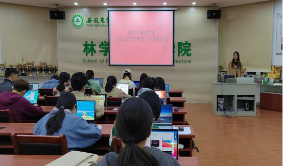 本网讯 11月14晚6:30为进一步加强我院团学组织建设,锻炼并塑造一支政治强、品德优、能力强、学习优的新生干部队伍,林学与园林学院在林学楼二楼报告厅成功举办“青马班”开班仪式。朱韵林主持本次会议,我院“青马班”全体成员参加了本次会议。