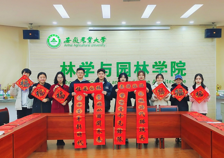 本网讯 丹心绘就林心,翰墨书写林茵。为庆祝中国共产党成立100周年,继承和弘扬中华优秀传统文化,增强学院文化软实力,12月19日下午,由林学与园林学院党委领导、团委指导的学院思想政治教育“四小组”全体成员在林学楼二楼报告厅开展“丹心绘就林心,翰墨书写林茵”主题迎新年写春联活动,本次活动由院兼职团委副书记、思想政治教育四小组学生负责人郭钊阳主持开展。