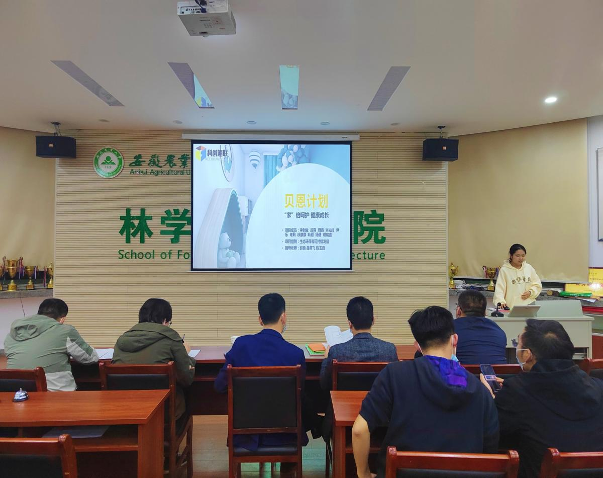 本网讯 为进一步提高林学与园林学院学生的创新创业能力,不断挖掘出更好的创新创业类项目,3月17日晚,林学与园林学院“兴农杯”大学生创业计划竞赛院赛在林学楼二楼报告厅举行,此次路演评审邀请了校团委副书记张志平、创新创业学院教育科科长张璐,校党委组织部丁朝阳、资源与环境学院副教授王振、工学院副教授王韦韦等老师出席并担任评审专家,学院副院长张龙娃、学院团委老师以及各团队负责人参加此次路演。