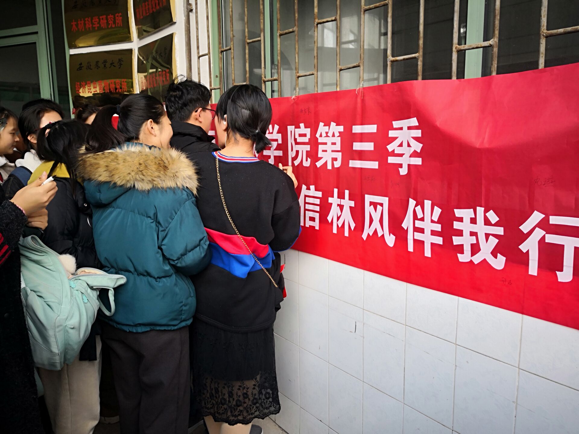 此外,学院近期还特别组织受资助学生,在林学楼一楼大厅举行开展感恩逐梦诚信考试签名现场活动。