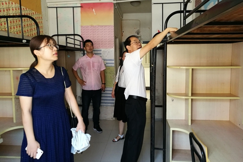 江正君一行逐个查看了新生宿舍的卫生状况和配套设施,对新生宿舍室内门窗、阳台的卫生安全情况和床铺、衣柜、空调以及水电等设施进行了细致的检查。在查看新生宿舍后,江正君指出,学生住宿是大事,安居方可乐学,没有安定舒适的“根据地”,学生很难集中注意力。尤其是刚离开父母、家乡的大一新生,宿舍是他们对学校的第一印象,因此宿舍环境至关重要。
