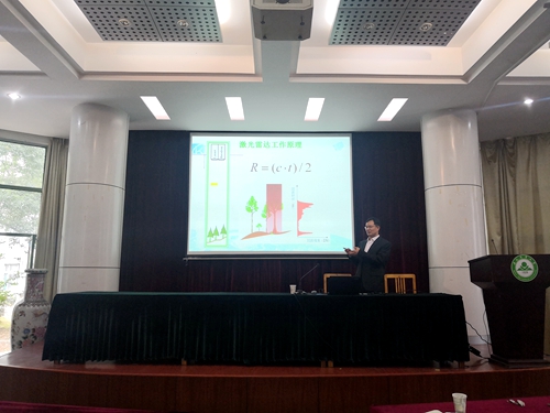 报告会上,庞勇教授首先以学长的身份介绍了自己的学习经历和经验,引导学生做好职业规划,明确目标。结合林业研究背景介绍了全球和我国的森林资源的分布及变化,重点分析了世界陆地范围内的森林和农田资源,借以引出报告会主题“高分影像与激光雷达数据在森林资源监测应用研究进展”。介绍了与林业监测密切相关的三种遥感技术:光学遥感、微博雷达遥感和激光遥感。正是这三门遥感技术奠定了现代林学监测的基础。庞勇集合自身多年研究成果分析了森林资源观测的特殊需求,如:森林监测范围广、森林垂直结构复杂和森林气候环境多样等。这些特殊的监测需求促成了现代森林资源监测的蓬勃发展。最后,庞勇又针对课题中的另一大主体“激光雷达”进行了详细地讲解。