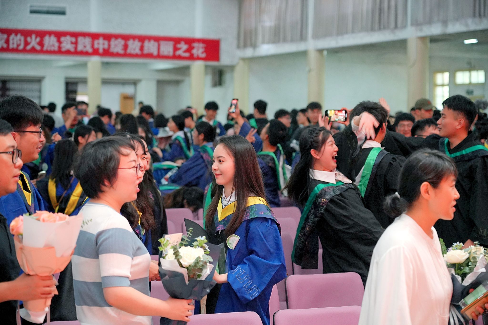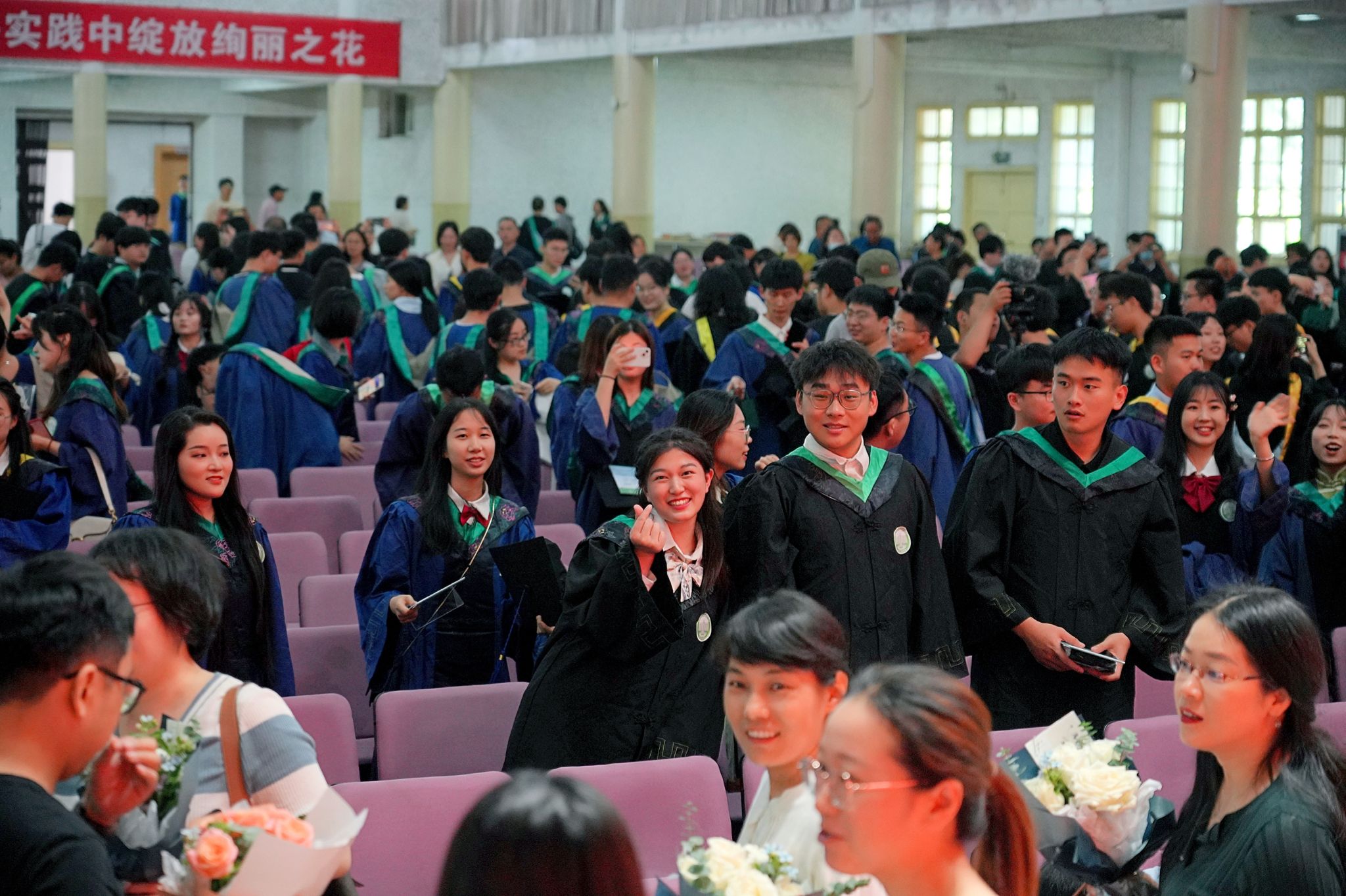 典礼结束,全体教师目送毕业生离开礼堂。(胡贝贝 一审:胡先业 二审:夏利明 三审:江正君)