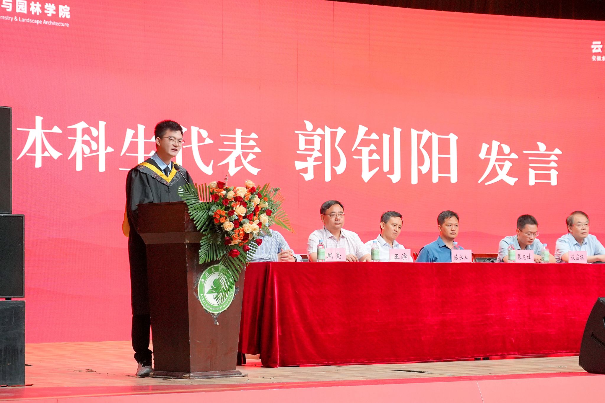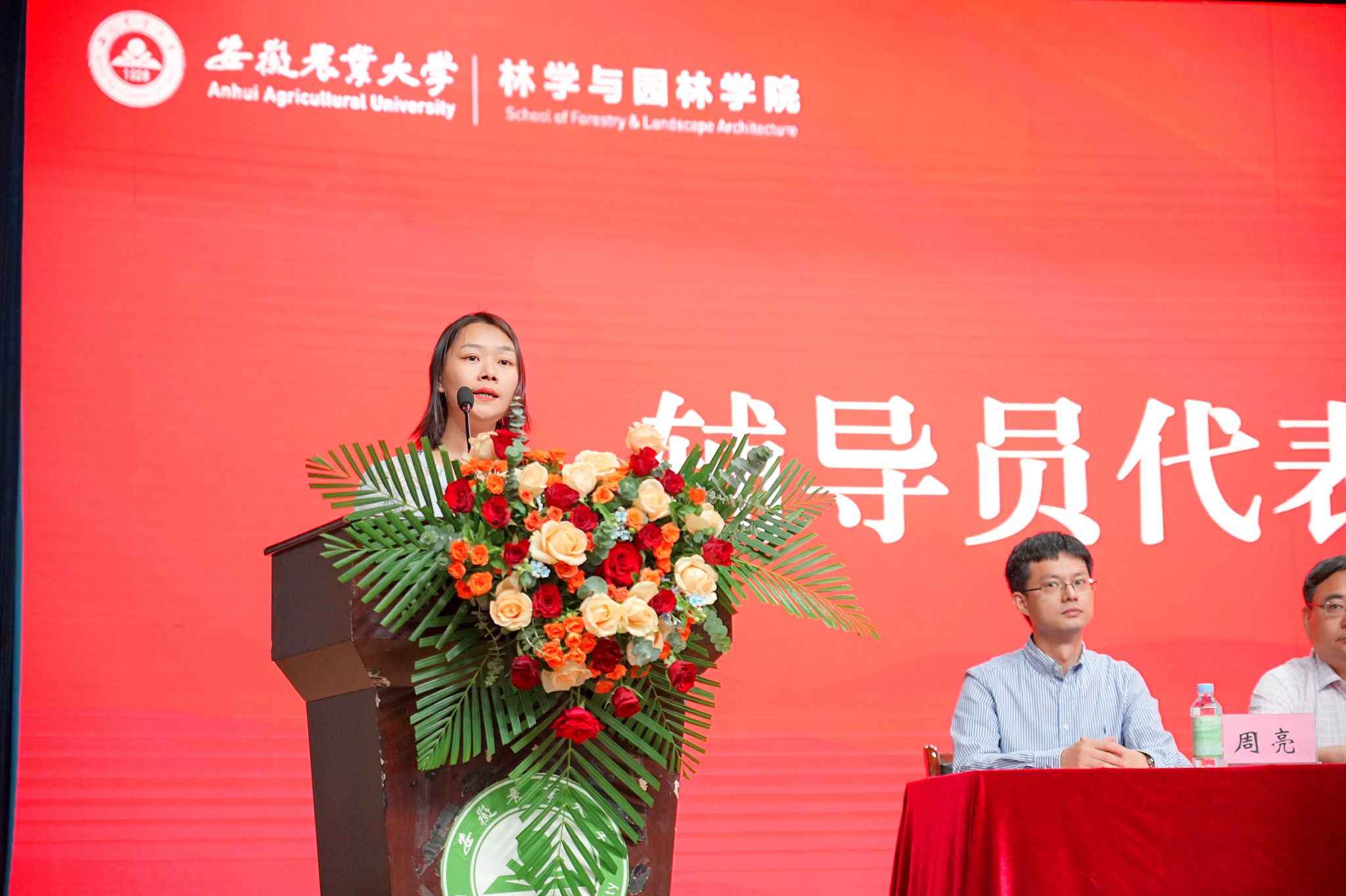 林学系主任、教师党支部书记王滨、19级材料科学与工程专业辅导员章亚琼、19级园林专业钱悦同学家长分别代表教师、辅导员、学生家长发言;18级城规专业郭钊阳、20级林业工程专业刘子菁分别代表本科生和研究生发言。