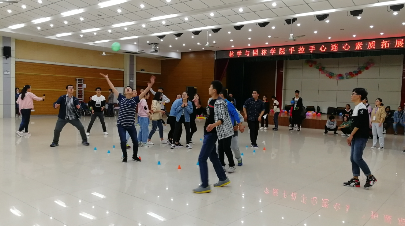 在参加活动的过程中,同学们热情高涨,欢声笑语充盈着小礼堂,同学们不仅增强了相互之间的友谊、锻炼了各项能力,也展现了林院学子的青春热情与激情,“手拉手.心连心”素质拓展培训活动也为林院学子展现自我提供了平台。