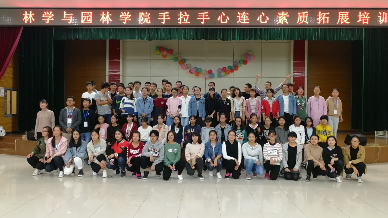 本网讯: 10月21日至10月22日,历时两天的林学与园林学院“手拉手心连心”素质拓展培训在欣苑四楼小礼堂成功举办。学院2017级木材、林学、园林、城乡规划、材料5个专业340名学生参与了本次活动。