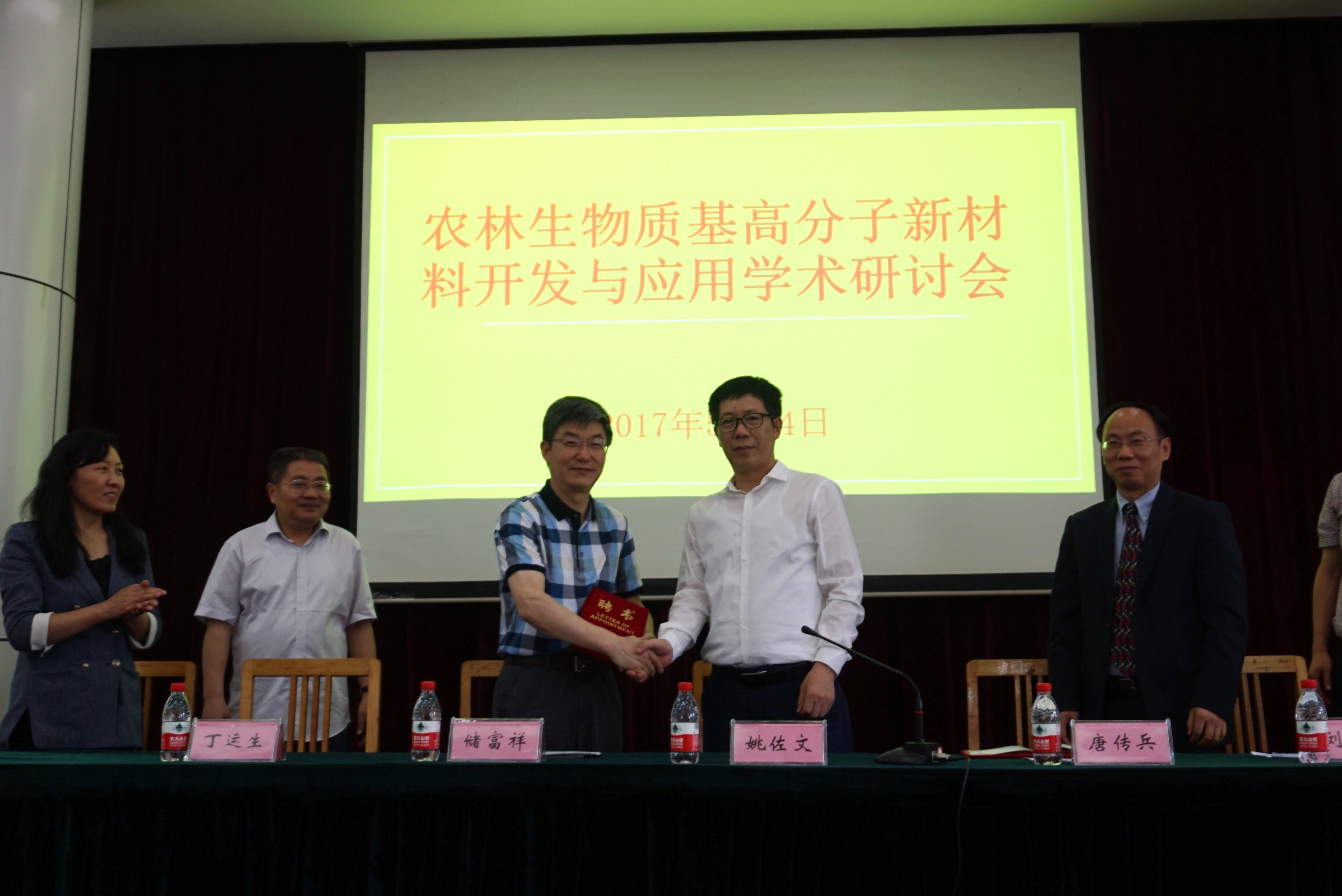 会议开幕式上,姚佐文副校长为储富祥和唐传兵两位教授颁发了名誉教授聘书。(周亮 通讯员:陶伟)