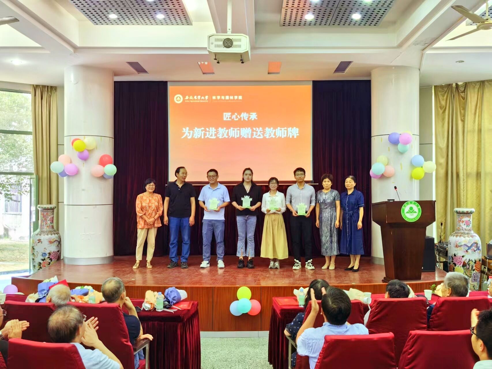 会上,为近三年退休教师代表举行了荣退仪式,为“光荣在岗30年”教师颁发了纪念奖章,“光荣在岗30年”教师为新进教师赠送了教师铭牌,希望新入职教师秉承前辈的优良品质,立足本职工作、爱岗敬业,潜心教书育人,在推进学院事业发展的征程上实现人生价值。