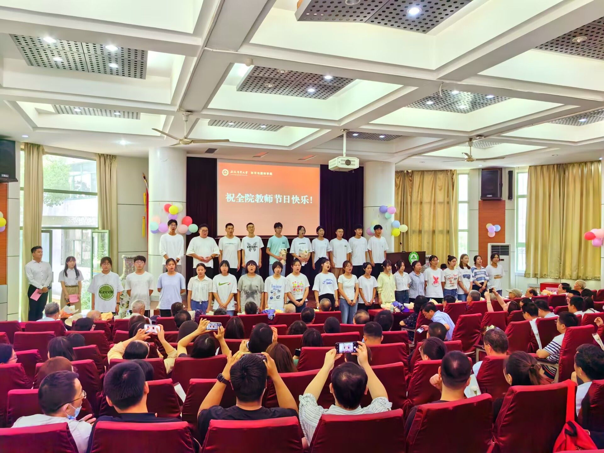 学院党委书记江正君代表学院党委,向一直以来关心、支持学院事业发展的老领导、老前辈表示衷心的感谢,向辛勤工作在教育教学一线的广大教师致以节日的问候,向为学院发展默默奉献的全体教师表示最崇高的敬意。他指出,学院坚持党建引领,教育教学、学科发展、人才培养各项工作不断取得新成绩。他希望全体教师胸怀“国之大者”,坚定理想信念,彰显“大情怀”;以前辈先贤为楷模,涵养高尚师德,拓展“大境界”;以名家大师为榜样,深厚学术积淀,成就“大学问”,继续以习近平新时代中国特色社会主义思想为指导,携手并肩、攻坚克难,为学校学院事业发展共同努力奋斗!