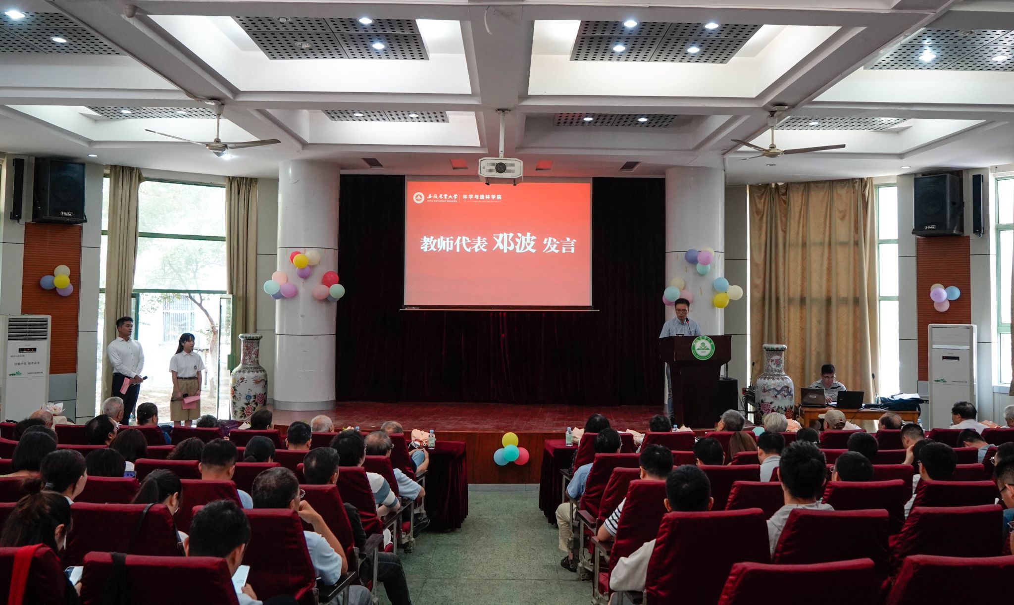 教师代表邓波分享了入职八年来的经历体会,表示作为一名青年教师,将始终坚守为党育人、为国育才的理想信念、始终坚持教学学术的科学严谨、始终坚持教书育人的使命担当、始终坚持人才培养的根本任务,持之以恒,求实创新,甘于奉献,努力成为有理想信念、有扎实学识、有仁爱之心的“四有”好老师。