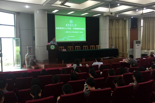 福建农林大学林学院院长马祥庆以“加强高层次人才引进,引领高峰学科建设”为主题,首先分享了福建农林大学在学科和人才队伍建设工作中的一些做法与取得的成绩,介绍了福建省“双一流”政策要求及校学科概况,并重点就福建农林大学林学院的学科设置和人才梯队做了介绍与分享。人事处处长朱立军,发展规划处处长方明先后就我校近年学科与人才队伍建设情况做了简要介绍,同时将学院2016年科学研究成果进行了数据分析并将我校的人才政策进行了解读,最后,院长刘盛全就学院学科与人才发展现状和建设举措进行了汇报。