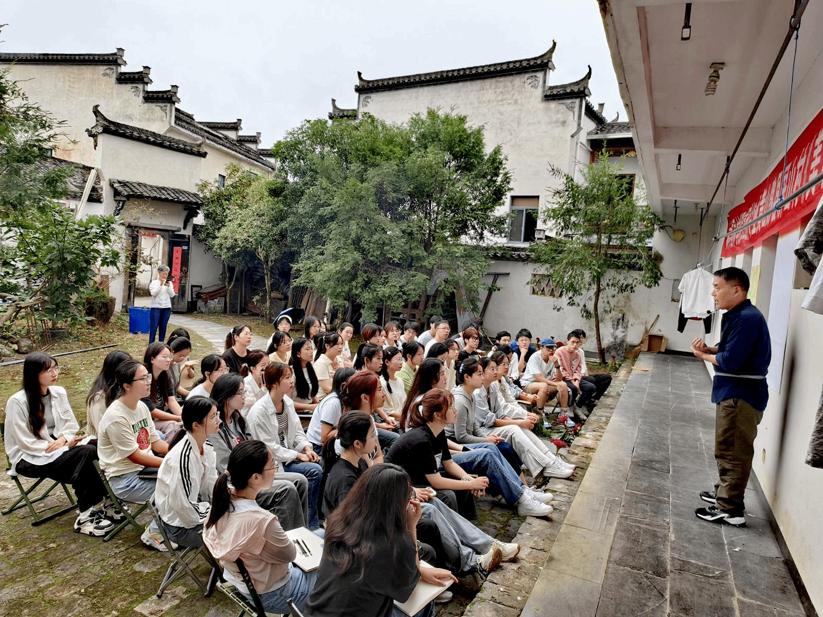 日前,安徽农业大学林学与园林学院利用中秋国庆假期开展教学实习,组织2022级园林专业全体同学赴黟县屏山村进行了为期7天的《美术》课程实地教学。