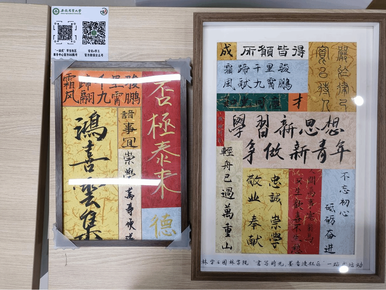 活动结束后,由工作人员收集同学作品,组合整齐后进行张贴并装入画框。