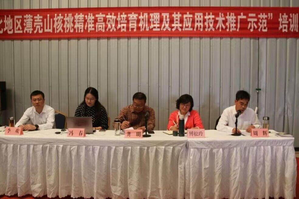 培训以知识讲座与实践相结合的方式开展。傅松玲就国内外薄壳山核桃经营现状及未来产业发展前景进行授课;龚明就皖北地区薄壳山核桃丰产栽培技术、苗木选择、品种配置、苗期和结果树的水肥管理、病虫害防治以及整形修剪等进行详细讲解。龚明还现场演示了薄壳山核桃旺树枝条的修剪方法,讲解了如何将营养枝转变成结果枝的方法。