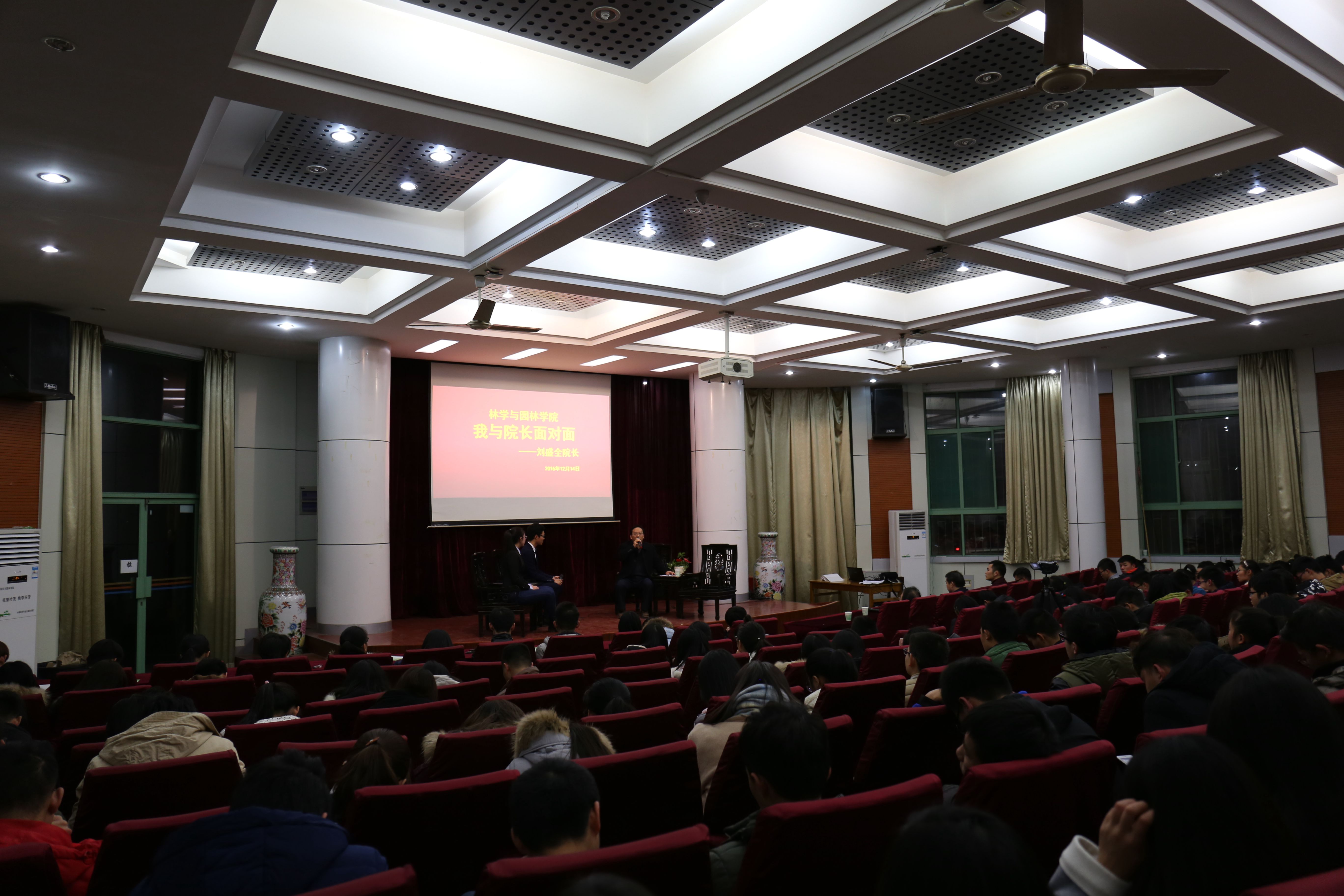本网讯 为倾听学生心声,了解学生对教育教学方面的疑惑,解决学生在学习工作和生活中的问题与困难,推进学院各项事业的发展,学院于12月14日晚在林学楼报告厅举办“我与院长面对面”活动。院长刘盛全与同学们进行了面对面交流,副院长徐斌、院办、团委等老师以及各班学生代表及学生会成员参加了活动。活动由学院党委副书记、副院长江正君主持。