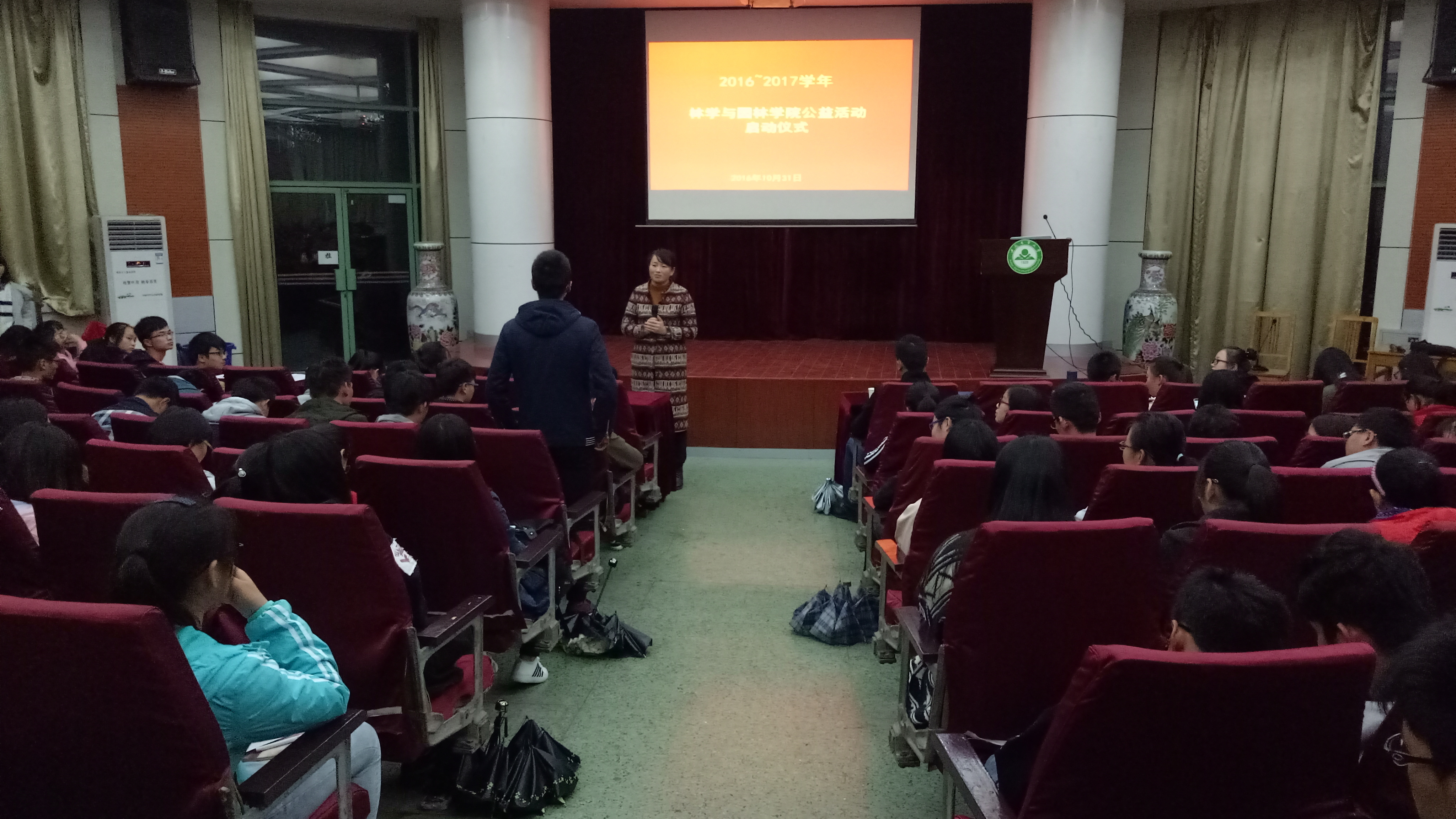 本网讯 10月31日晚,林学与园林学院在林学楼报告厅举办公益活动启动仪式。院团委老师,校岗部、院公益活动部工作人员及本学年受资助的同学参加了启动仪式。