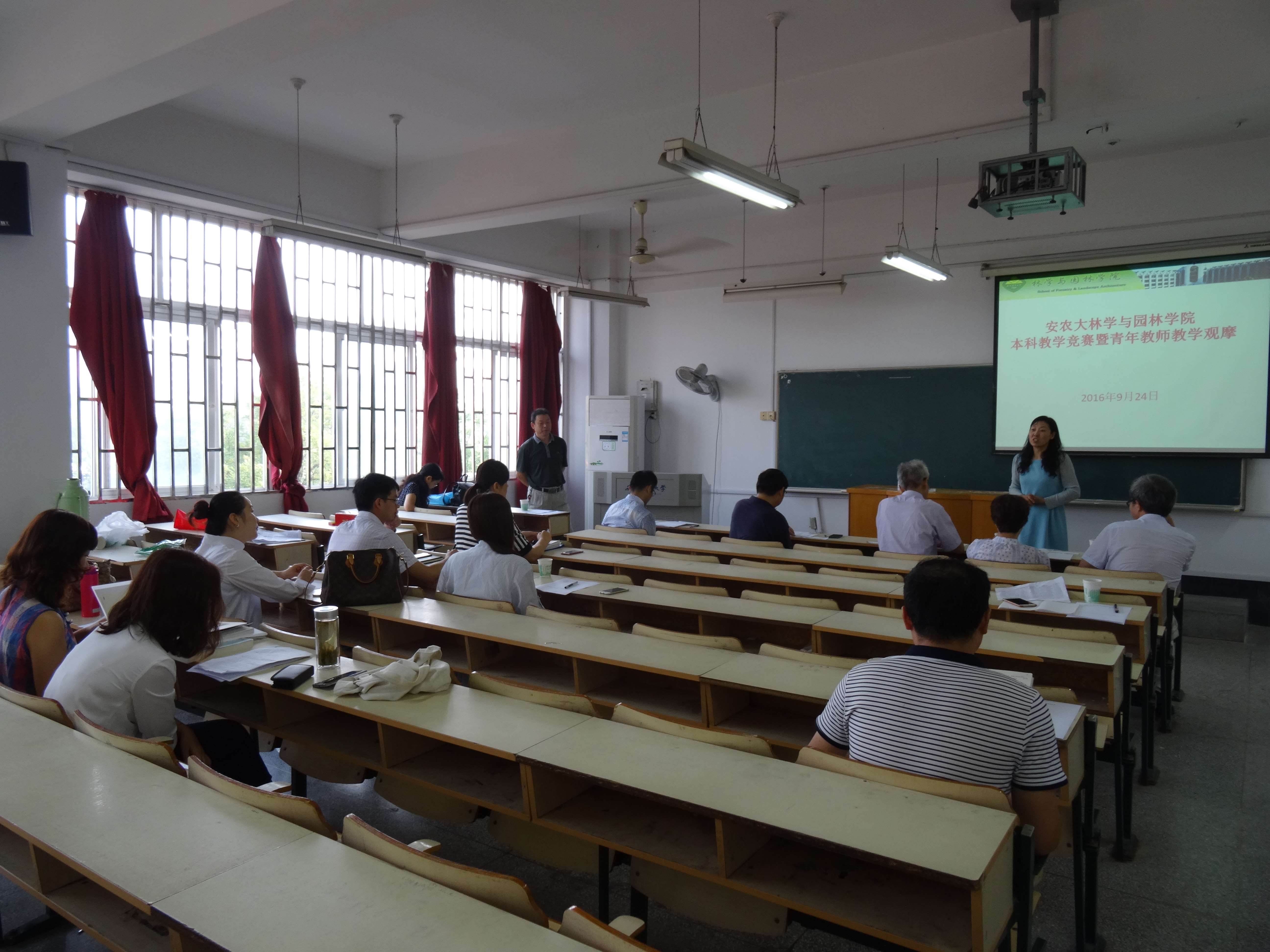 本网讯 为进一步提升教师的教育教学水平,提高本科教学质量。9月25日,林学与园林学院在勤学楼320教室举办学院第五届教学竞赛暨青年教师教学观摩活动。校教学督导组组长张新贵、学院党委书记唐红萍出席本次活动。活动由副院长徐斌教授主持。全院15位参赛选手参与教学竞赛,28位青年师参与观摩活动,5位教学经验丰富教师担任点评嘉宾。
