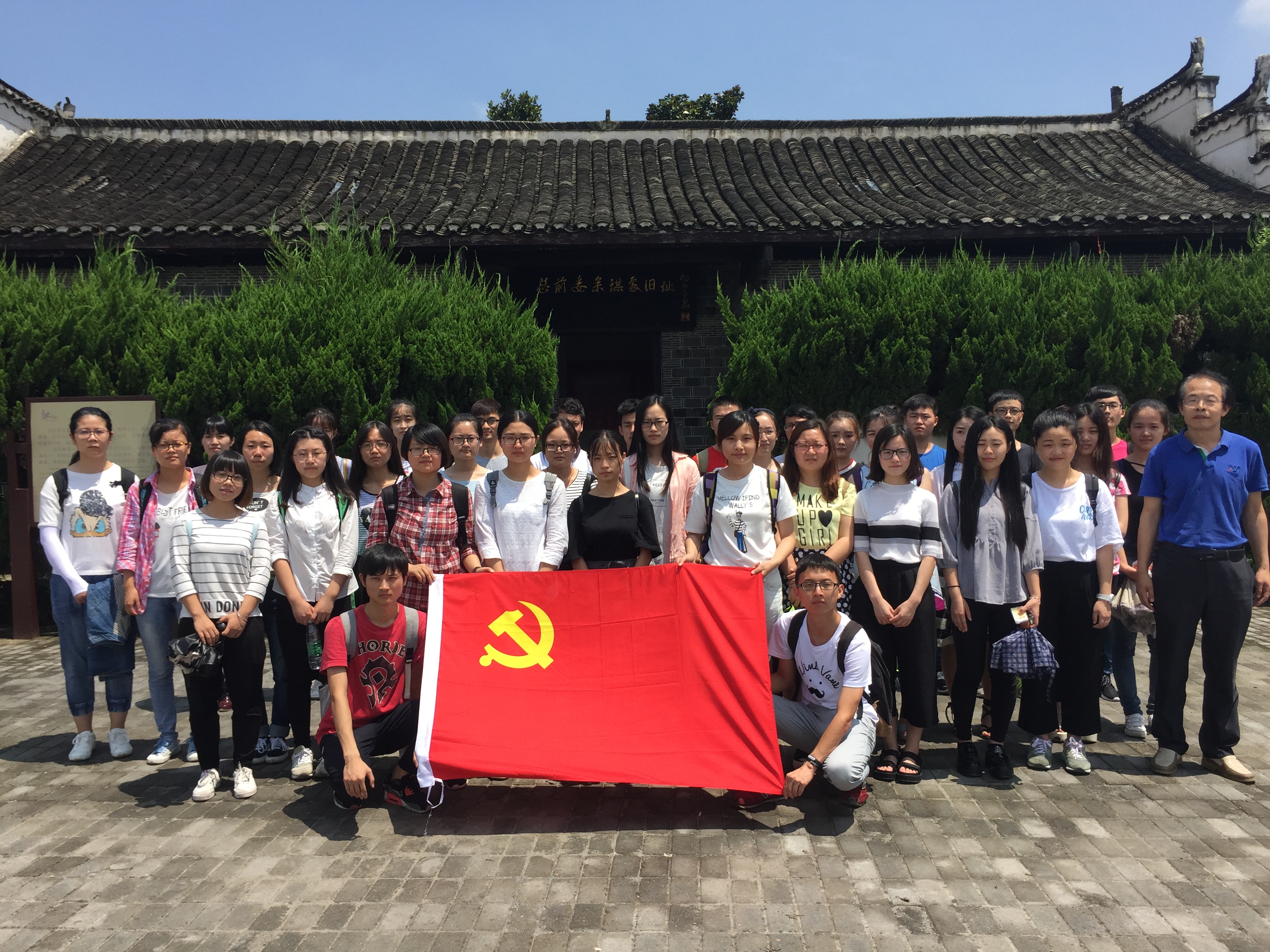 参观结束后,在渡江战役总前委旧址前,面对鲜红的党旗,党员们高举右手,重温入党誓词,郑重宣誓了自己为共产主义事业矢志奋斗的庄严承诺。