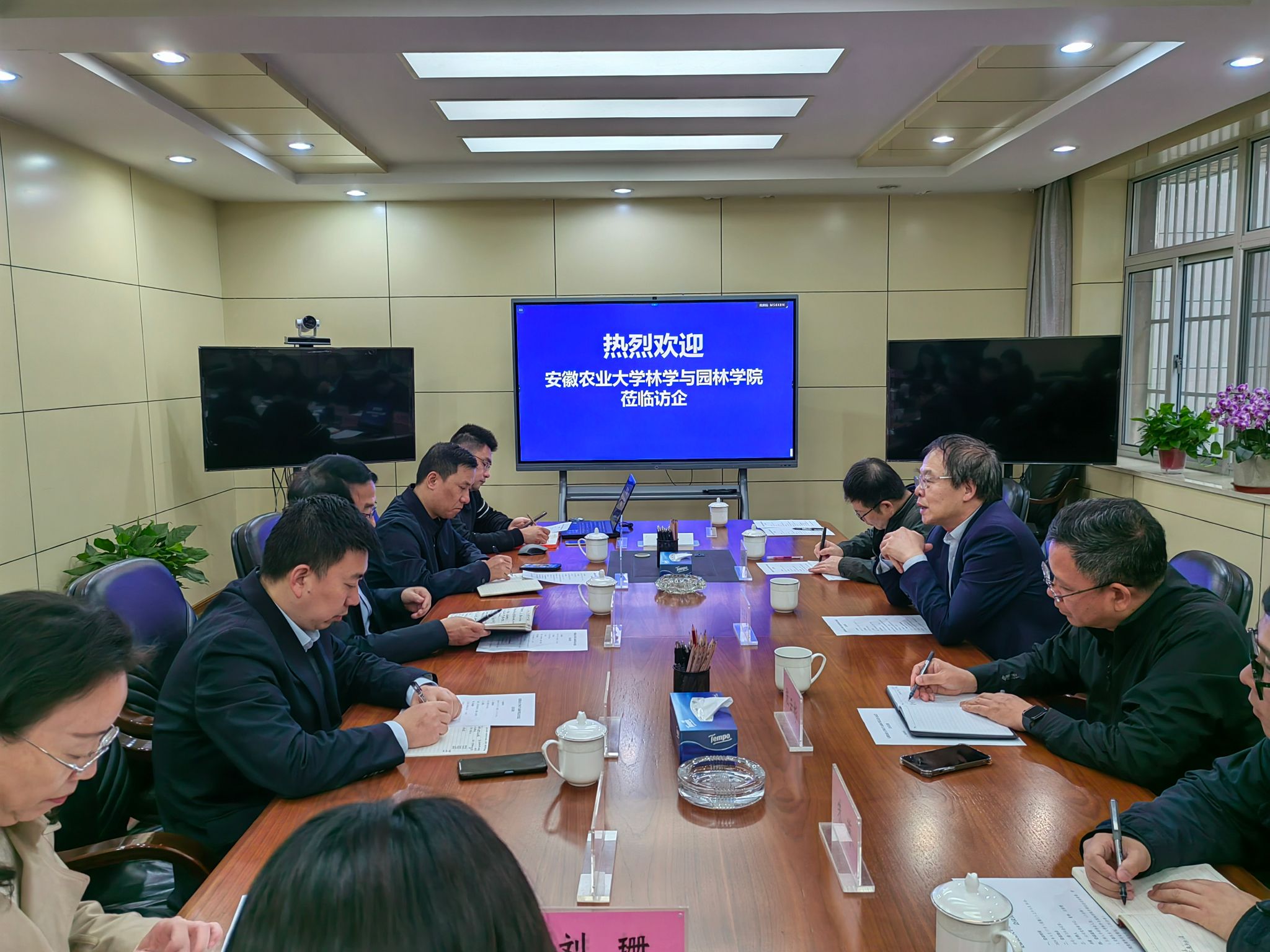 安徽省城乡规划设计研究院总经理汤健对江正君一行的到来表示热烈欢迎,向学院多年来的关心支持表示衷心感谢,他表示,将加强与学院在人才培养、科学研究、成果转化等多方面的深度交流,实现互促共赢。