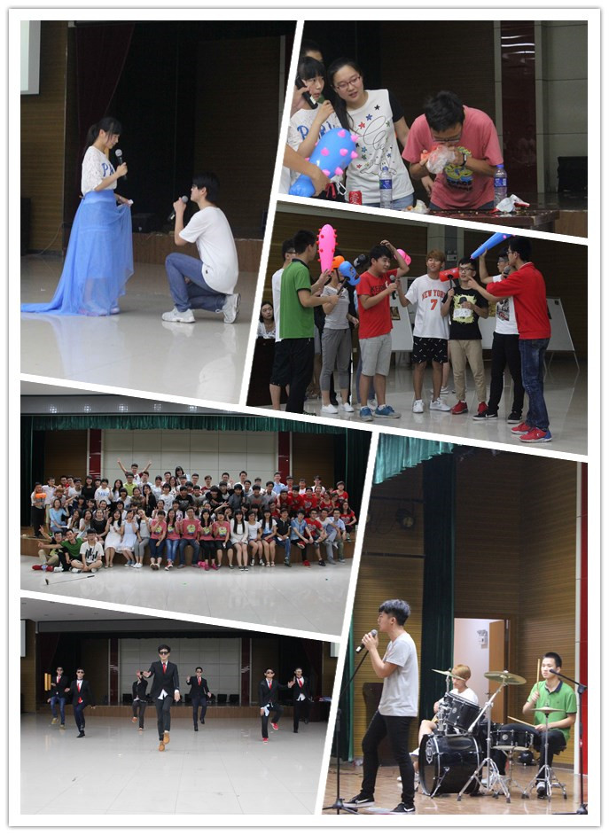 穿插在文艺表演中的互动游戏真正点燃了大家的兴奋点,《爱的抱抱》、《交换名字》 、《抽一句话》、《吃货大接力》以及《撕名牌》等几个游戏使在场所有人都互动了起来。最后,全体同学合影留念,为本次活动画上圆满的句号。