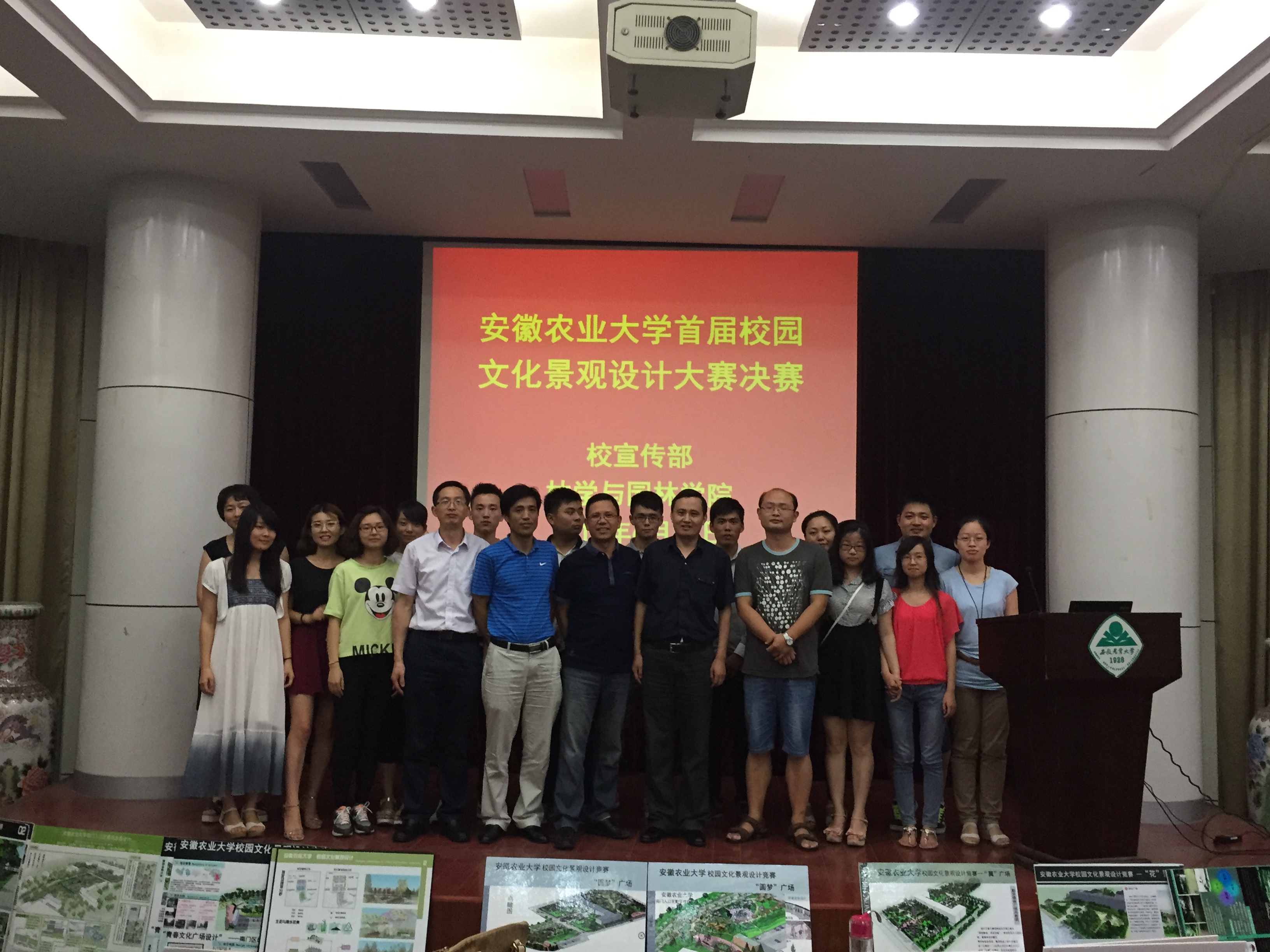 本网讯 6月29日,由校宣传部和林学与园林学院联合举办的安徽农业大学首届校园文化景观设计大赛决赛在林学楼报告厅举行。担任本次大赛的评委有宣传部副部长夏成云、总务处副处长郭晓东、林学与园林学院风景园林系主任陈永生、城乡规划系主任张云彬、轻纺艺术学院环境设计专业教师赵飞。相关专业研究生和本科生参加了比赛。
