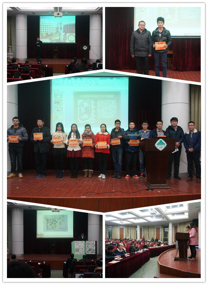 本次比赛共有19支参赛队伍,比赛形式由选手PPT演示及老师点评两部分组成。参赛选手配合PPT,先逐步讲解自己的设计思路,之后通过评委提问答辩来对设计概念进行进一步的诠释。在校园环境设计中,学校九教前大草坪、保卫处后花园以及林学楼前的小广场等场地均被参赛选手选中,作为设计改造的目标,选手们对所选场地的设计不足进行分析,提出改造方案,展现专业素养。