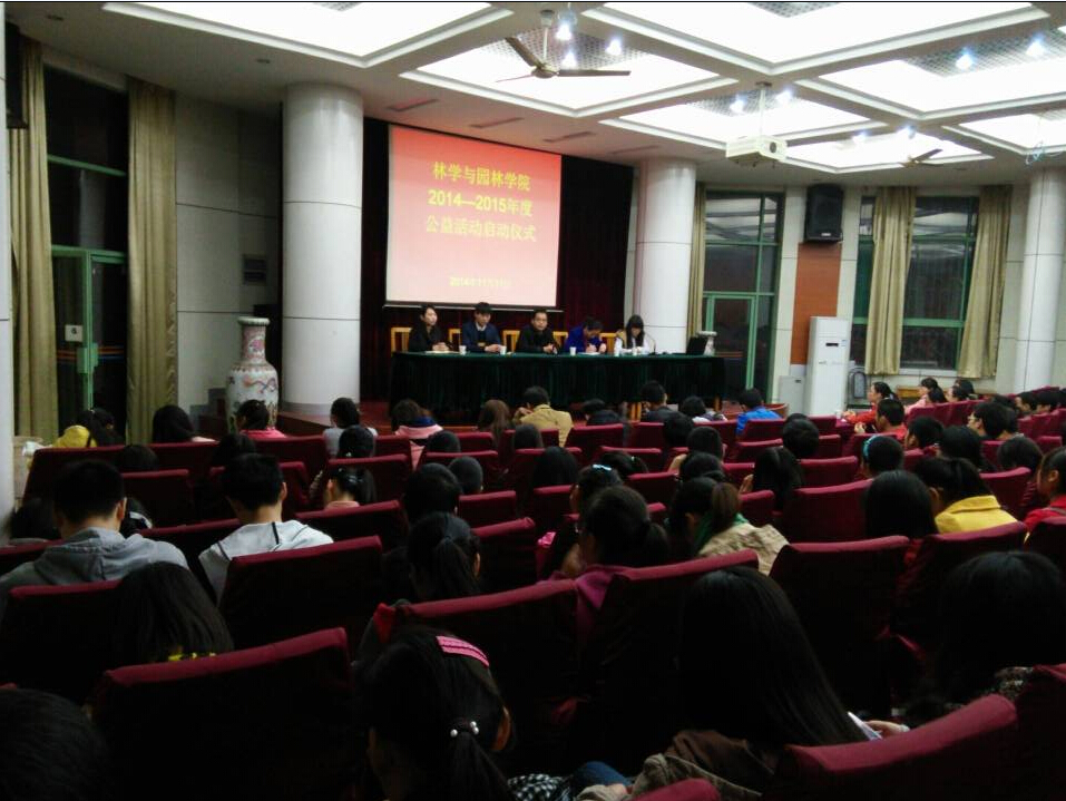 本网讯:11日晚,林学与园林学院在林学楼报告厅举行“2014-2015学年文明示范区暨公益活动启动仪式”。学院党委李玮副书记、院团委各位老师受资助学生参加了启动仪式。