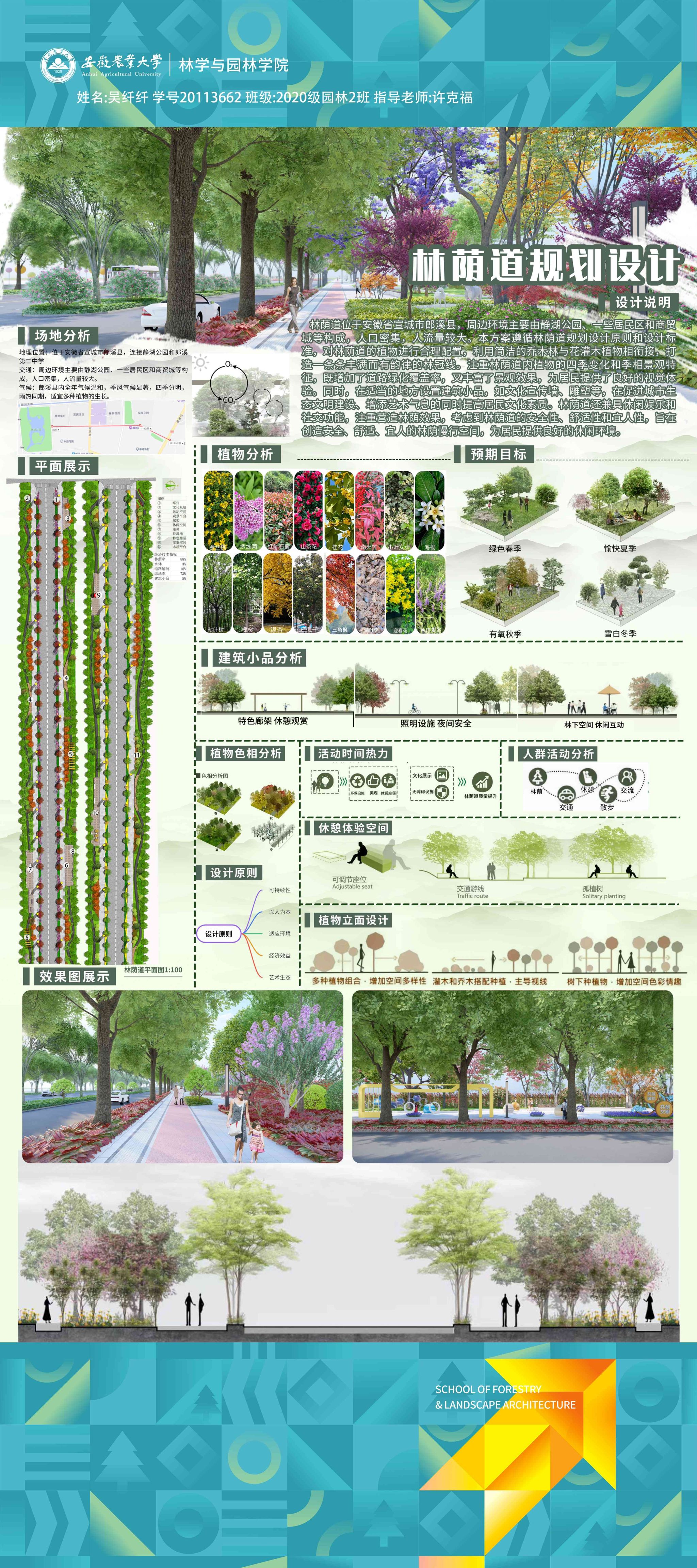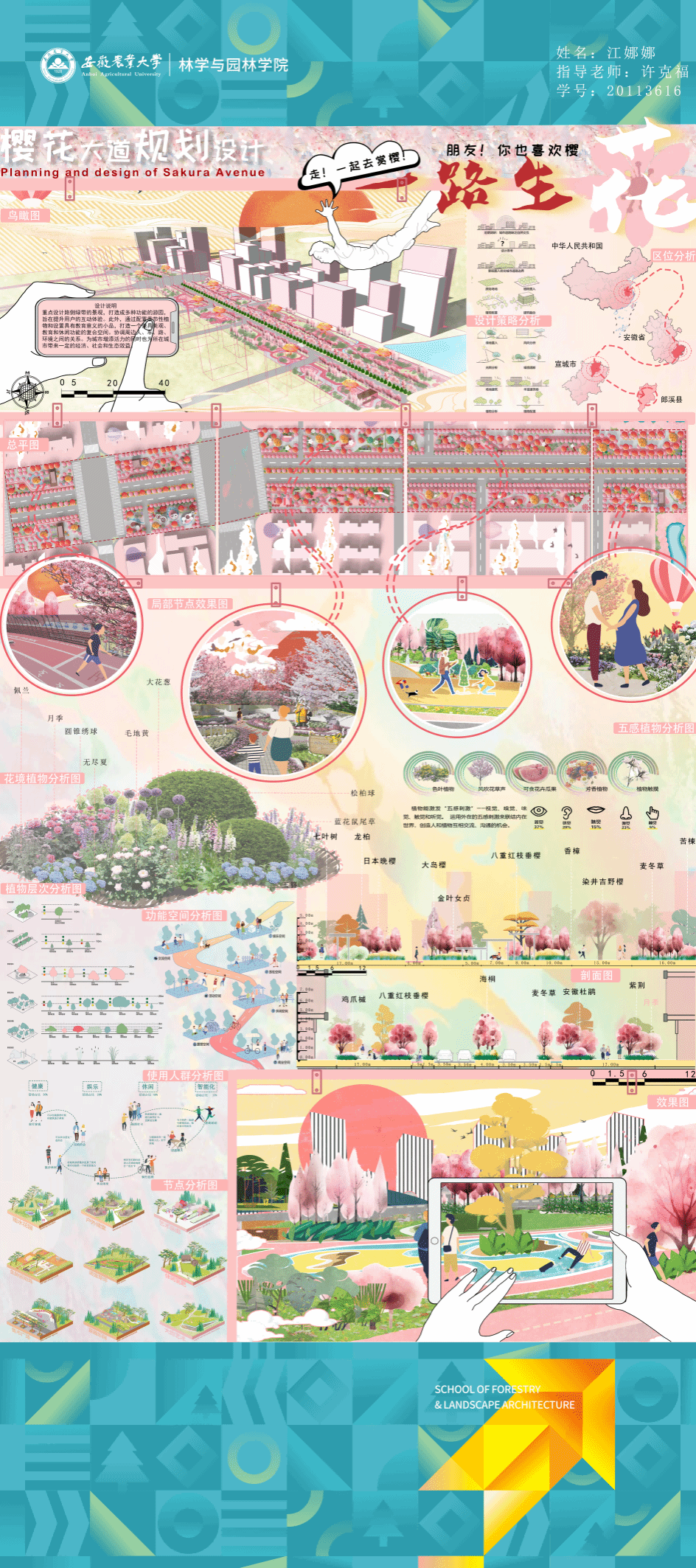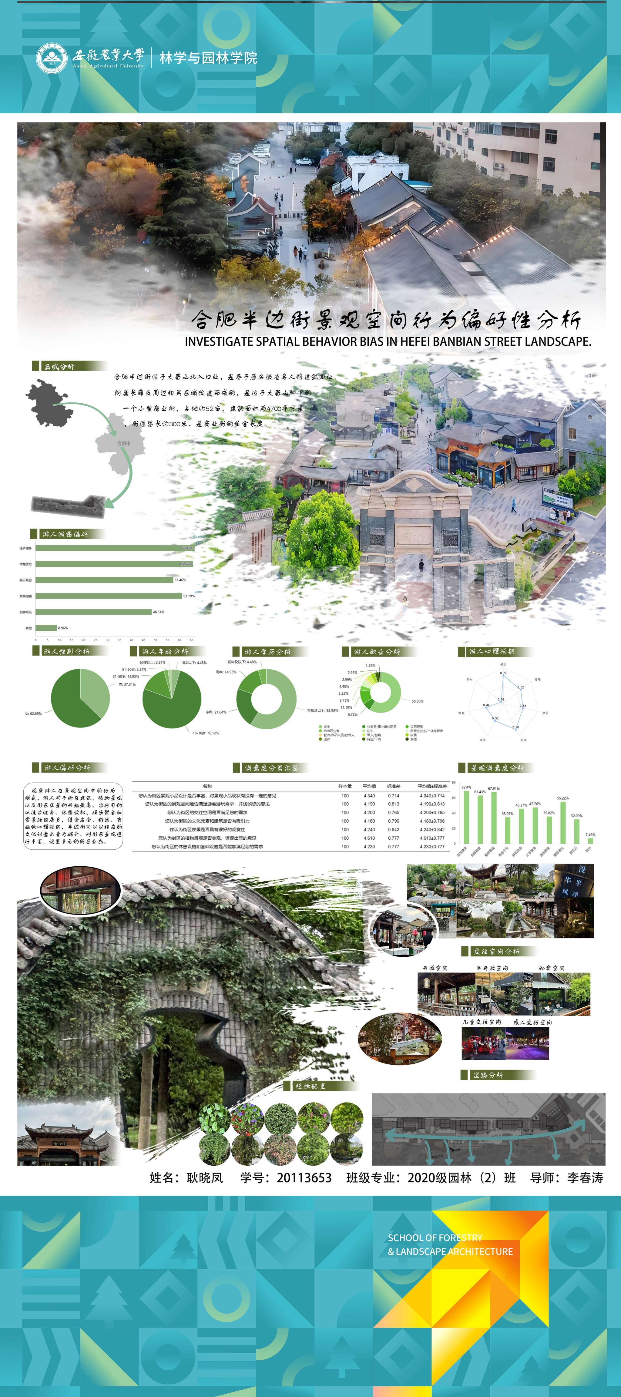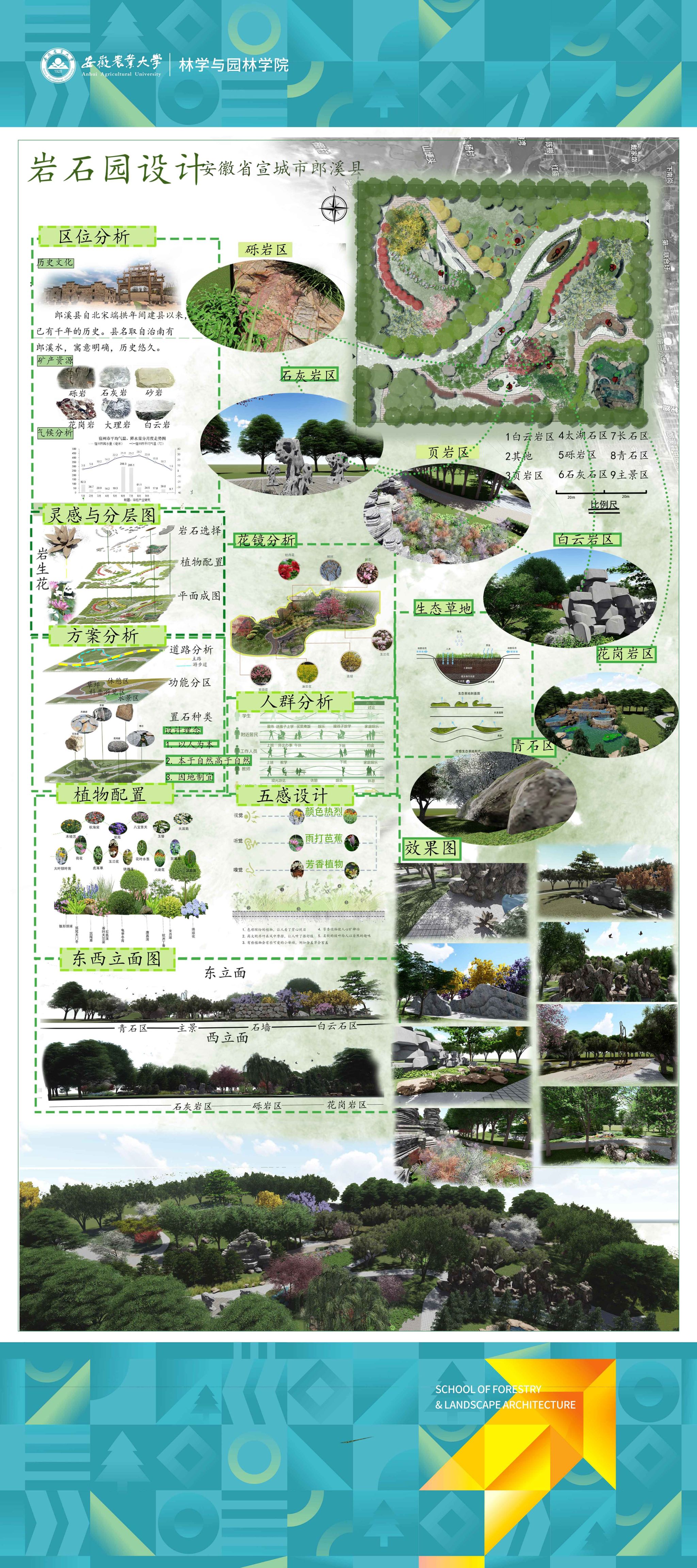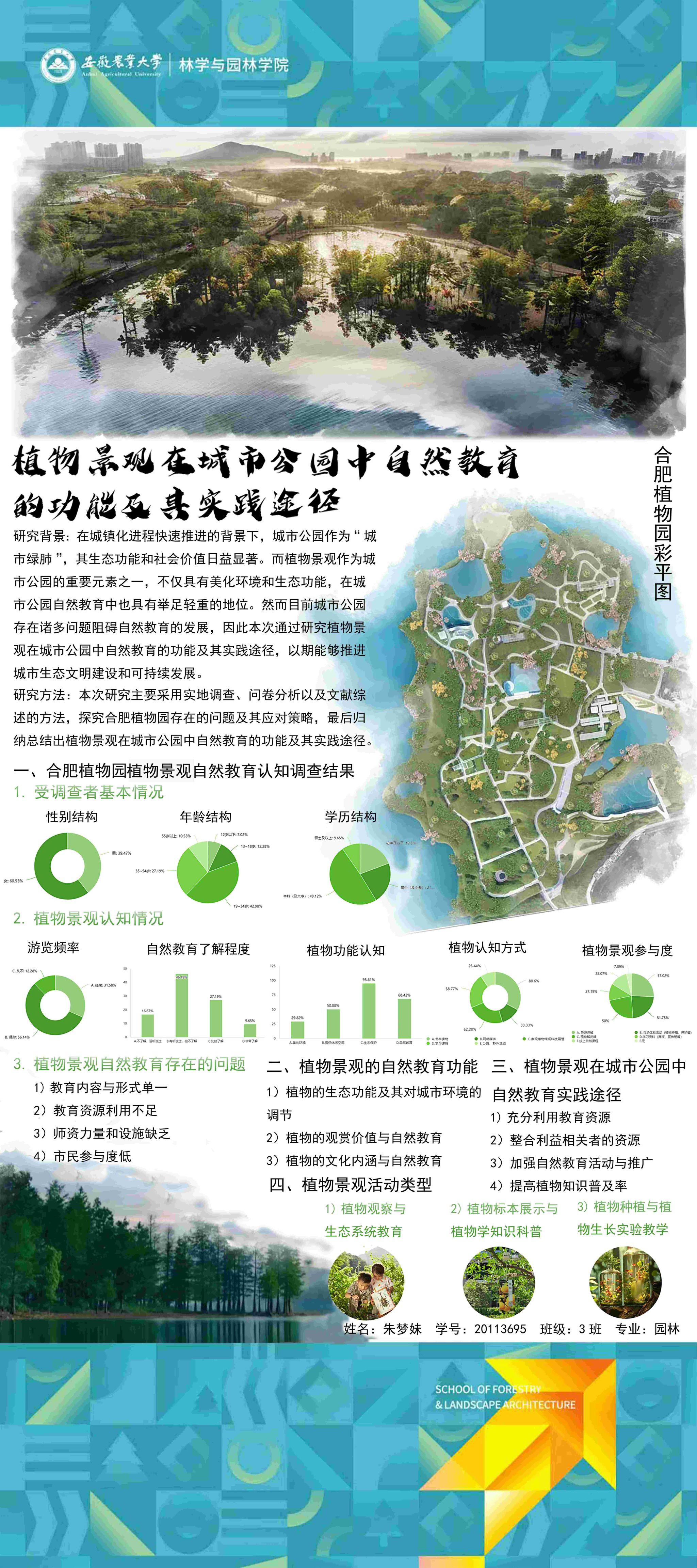 园林专业为国家级一流专业,突出农、理、工、文、艺多学科交叉的多元联动培养优势,在风景园林规划设计、园林植物造景应用、风景园林工程建设与管理、园林植物繁育与栽培等方向处于国内同类院校的先进水平。本次本科毕业设计(论文)展包括园林规划与设计、园林植物种质资源创新、园林植物生理生态、园林自然教育、园林植物遗传育种等多个方向。