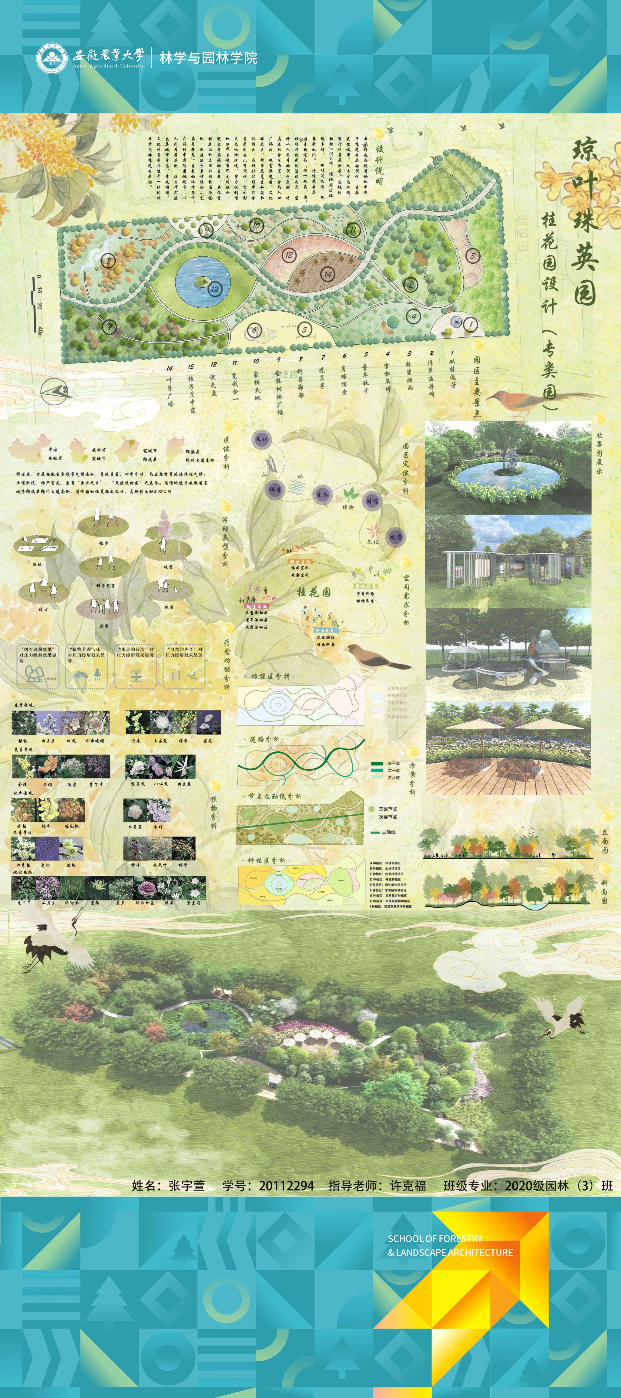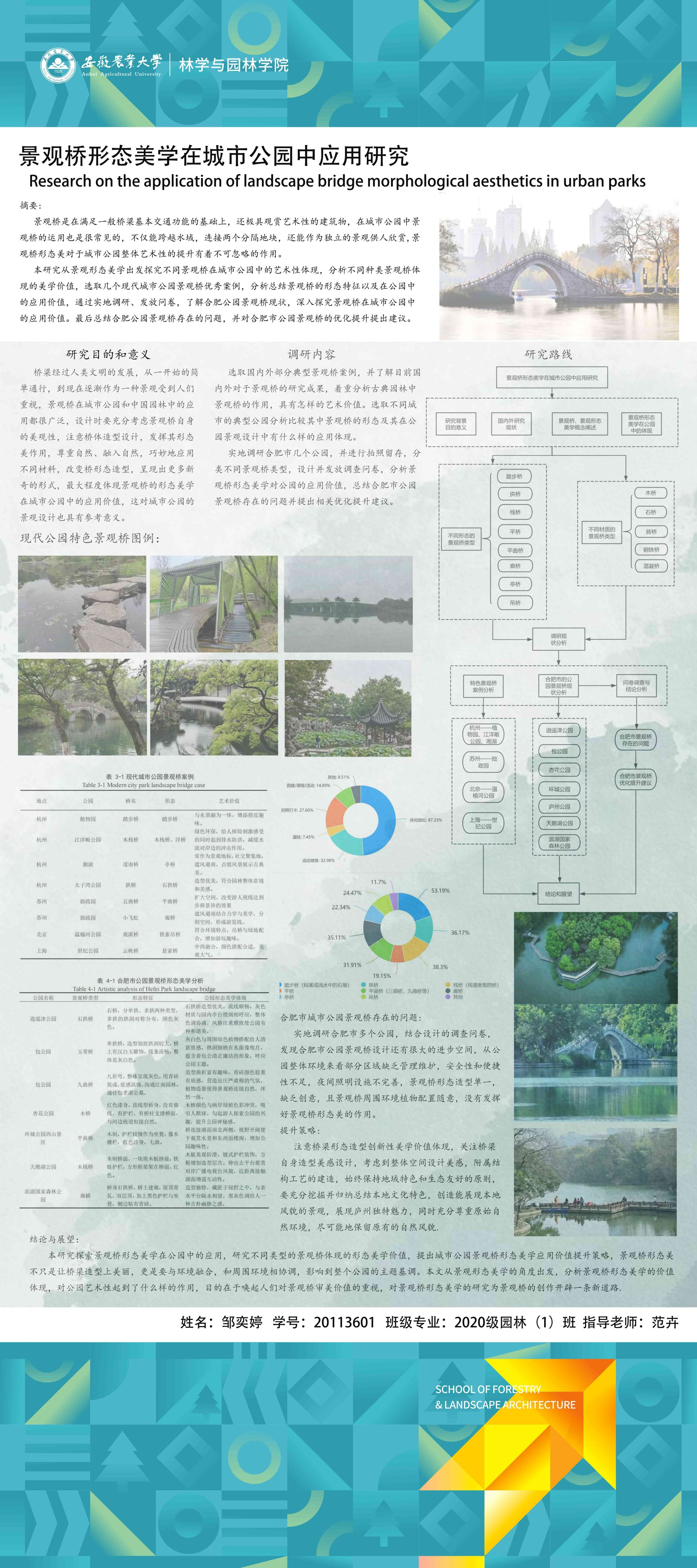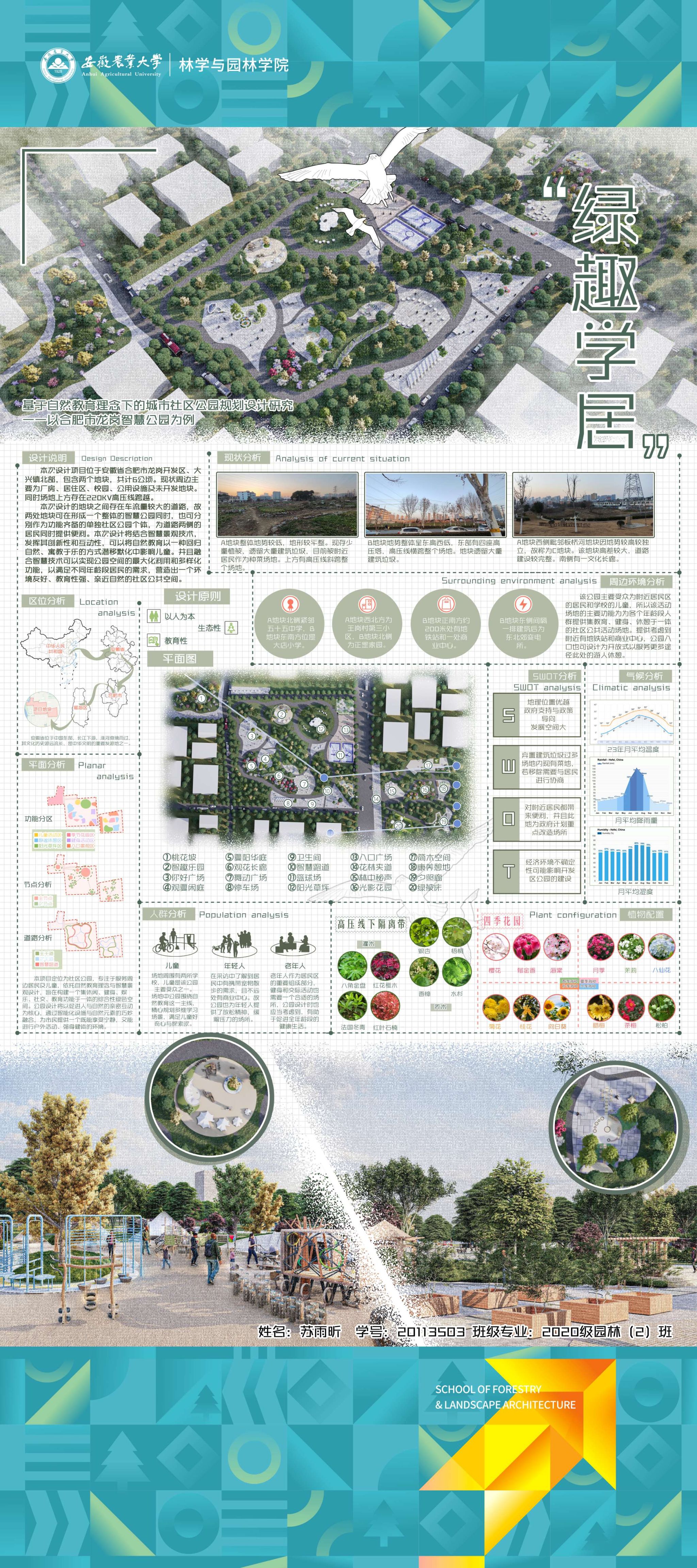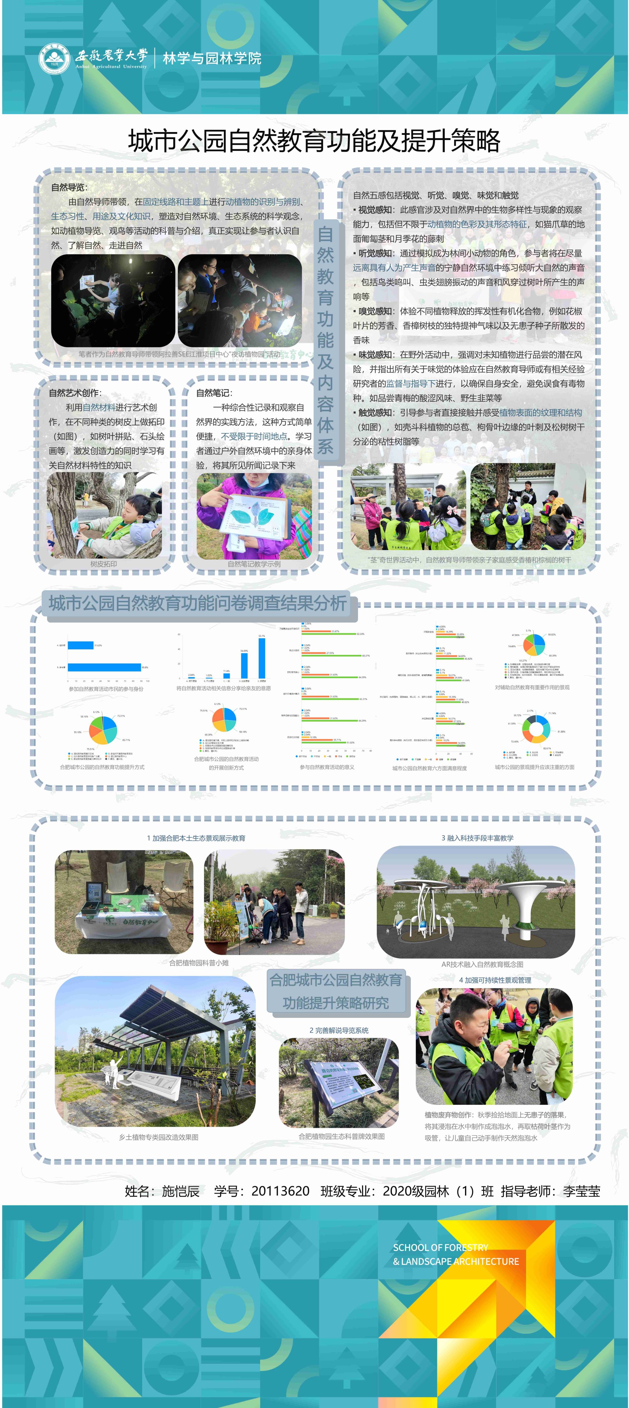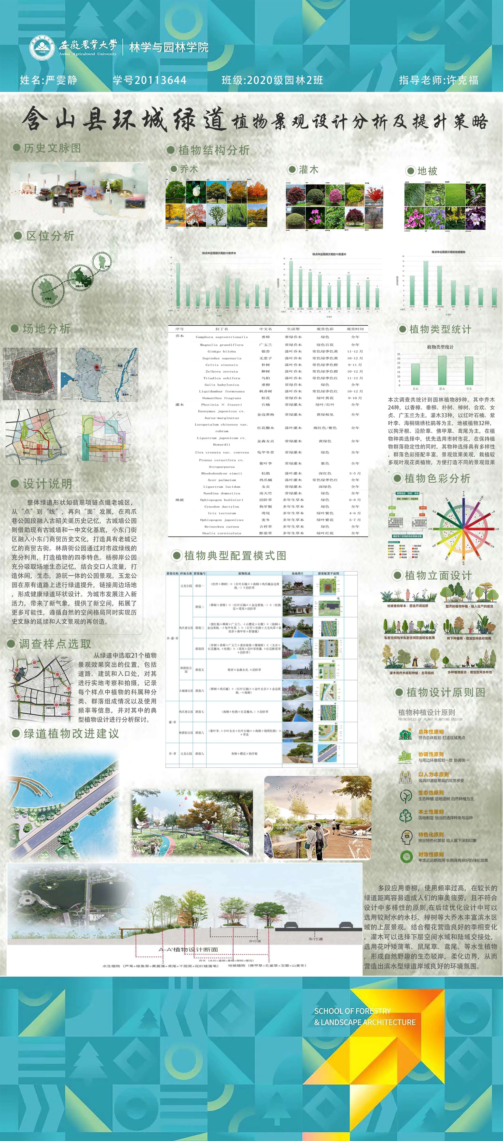 园林专业为国家级一流专业,突出农、理、工、文、艺多学科交叉的多元联动培养优势,在风景园林规划设计、园林植物造景应用、风景园林工程建设与管理、园林植物繁育与栽培等方向处于国内同类院校的先进水平。本次本科毕业设计(论文)展包括园林规划与设计、园林植物种质资源创新、园林植物生理生态、园林自然教育、园林植物遗传育种等多个方向。