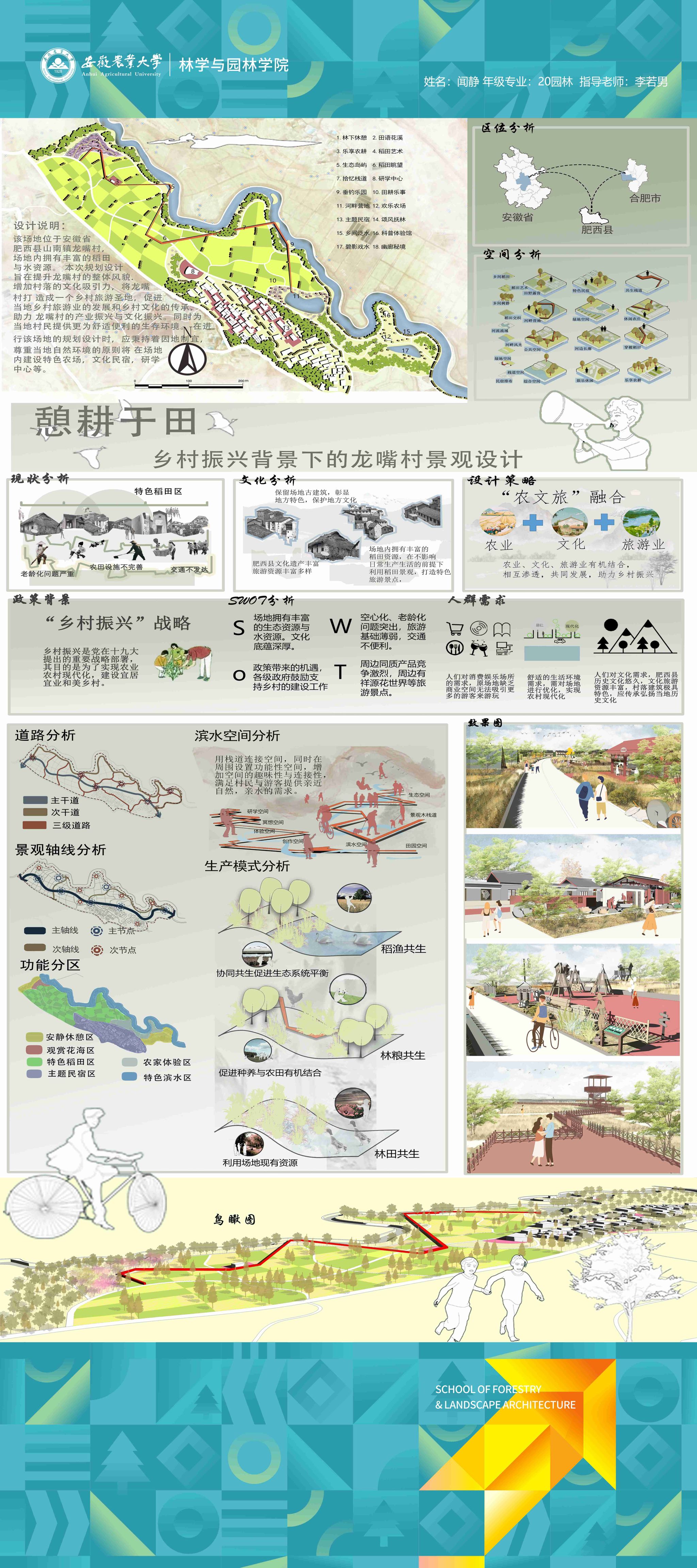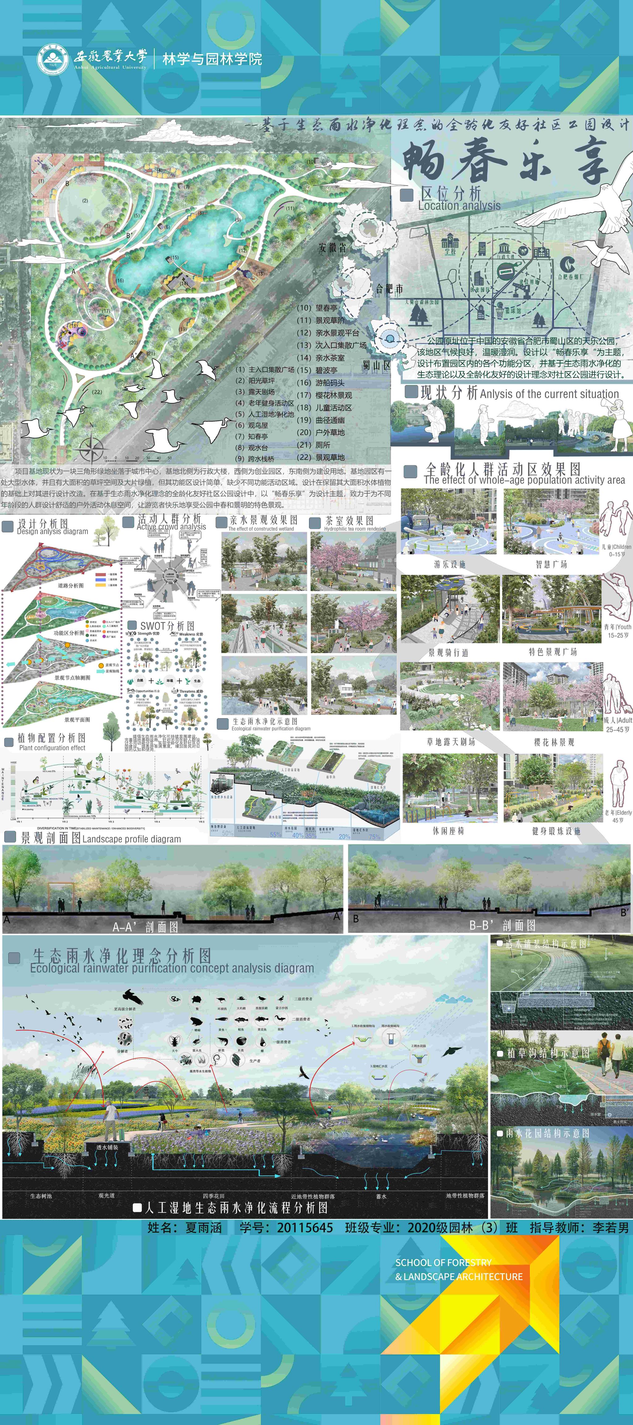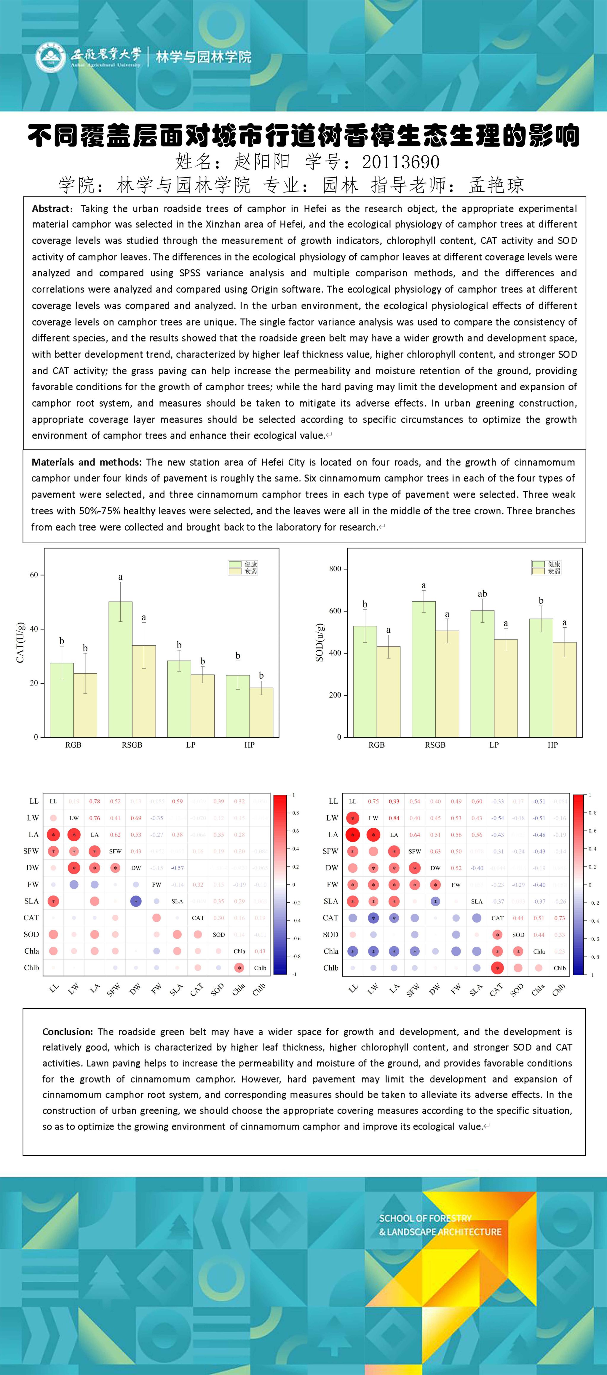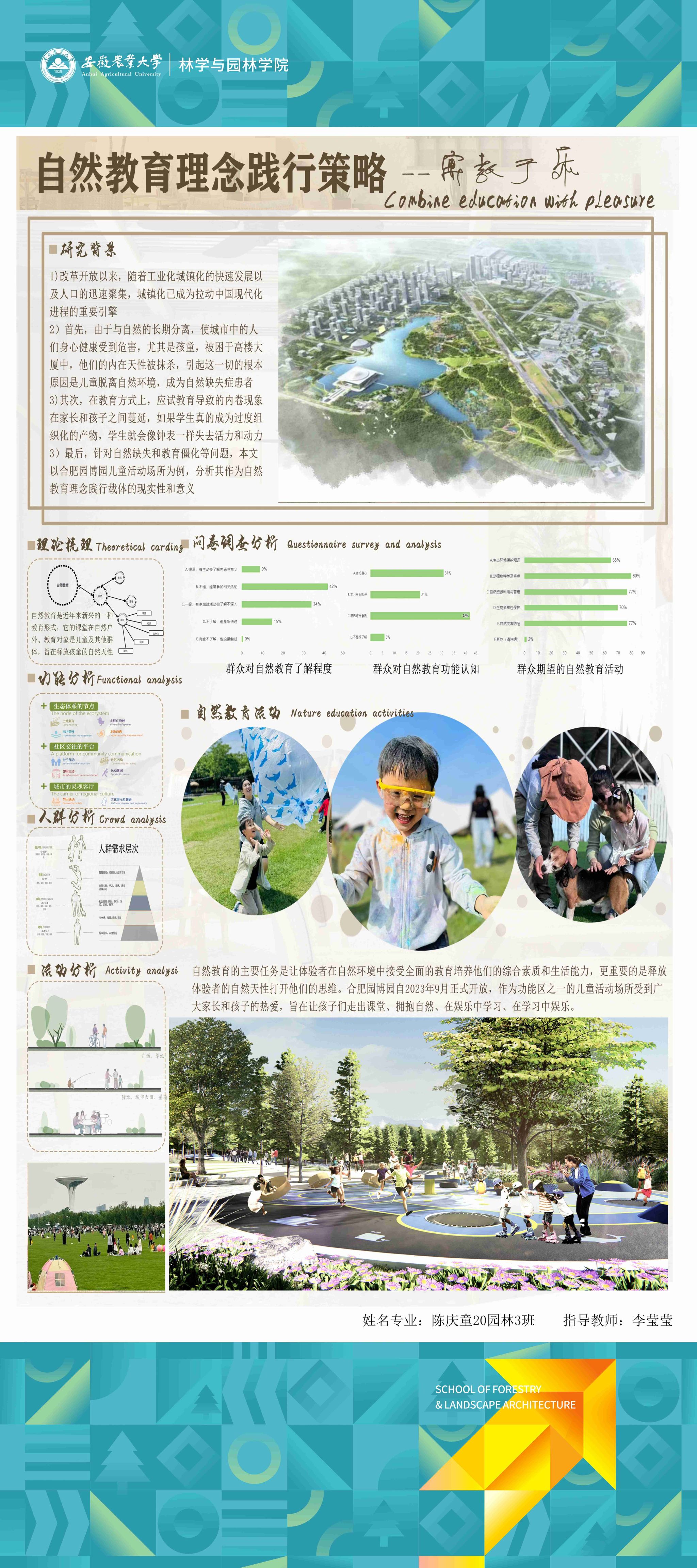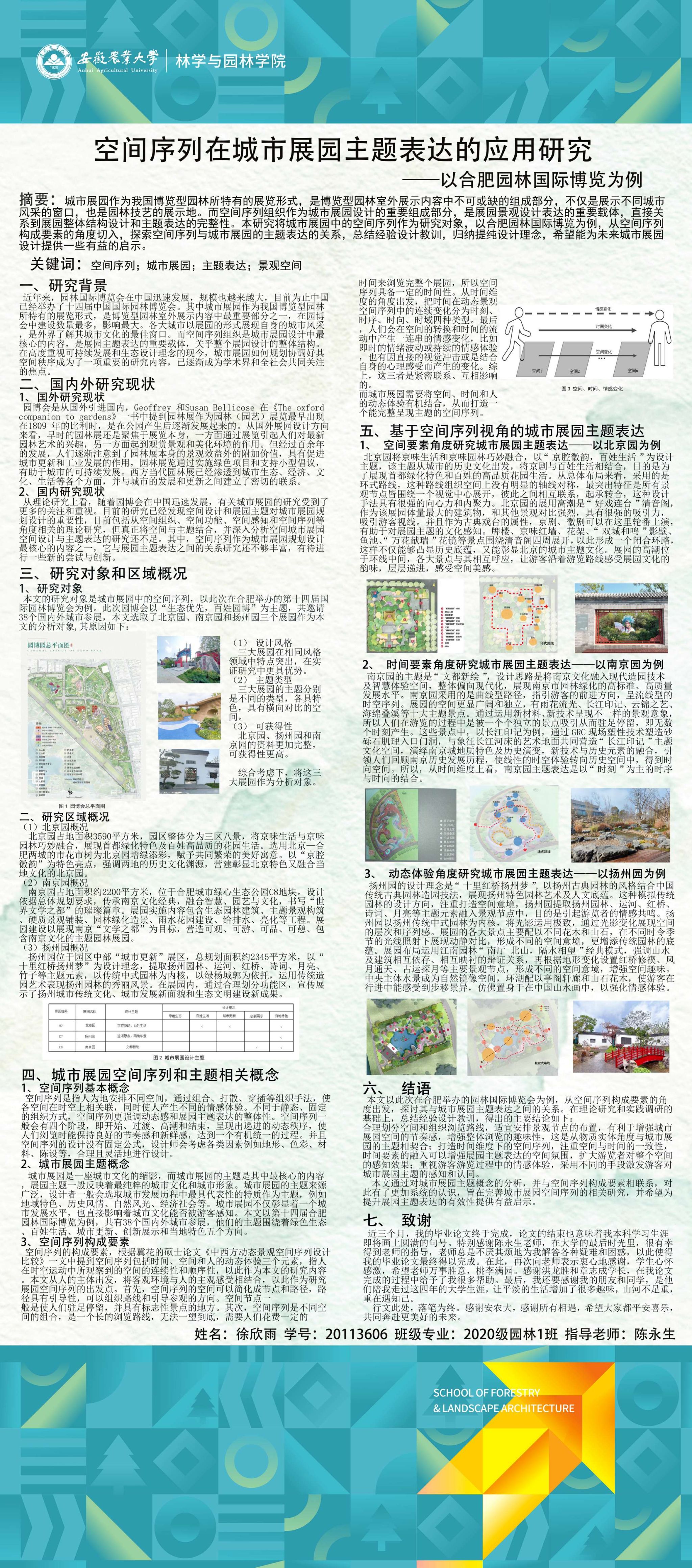 园林专业为国家级一流专业,突出农、理、工、文、艺多学科交叉的多元联动培养优势,在风景园林规划设计、园林植物造景应用、风景园林工程建设与管理、园林植物繁育与栽培等方向处于国内同类院校的先进水平。本次本科毕业设计(论文)展包括园林规划与设计、园林植物种质资源创新、园林植物生理生态、园林自然教育、园林植物遗传育种等多个方向。