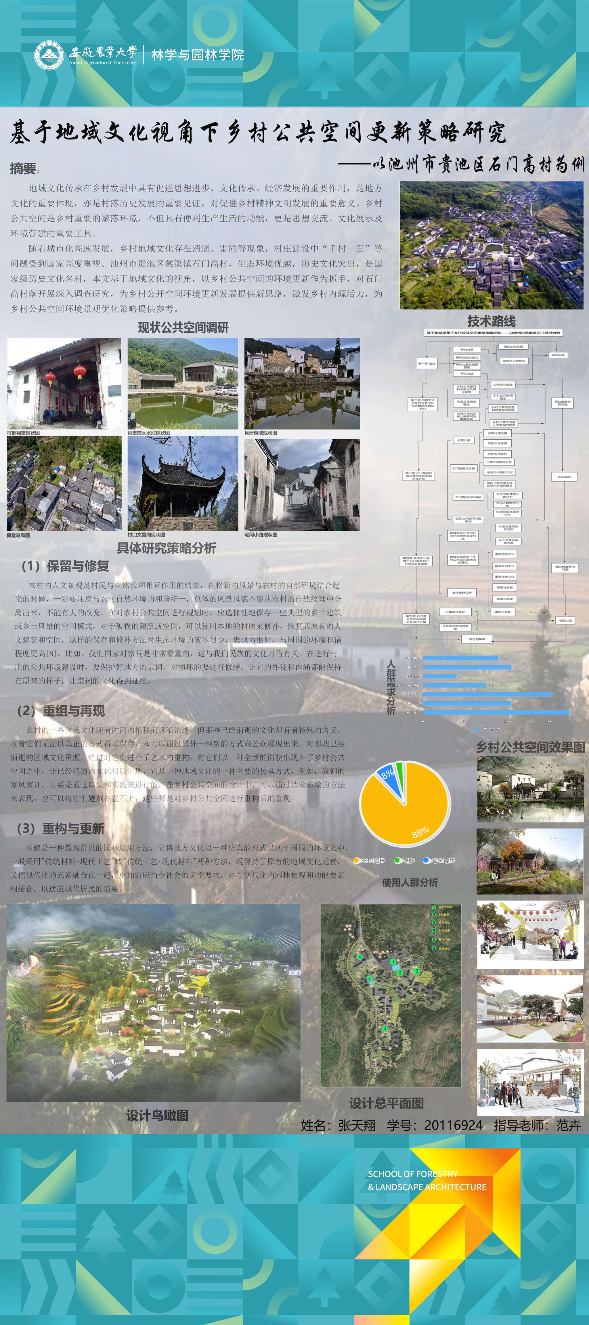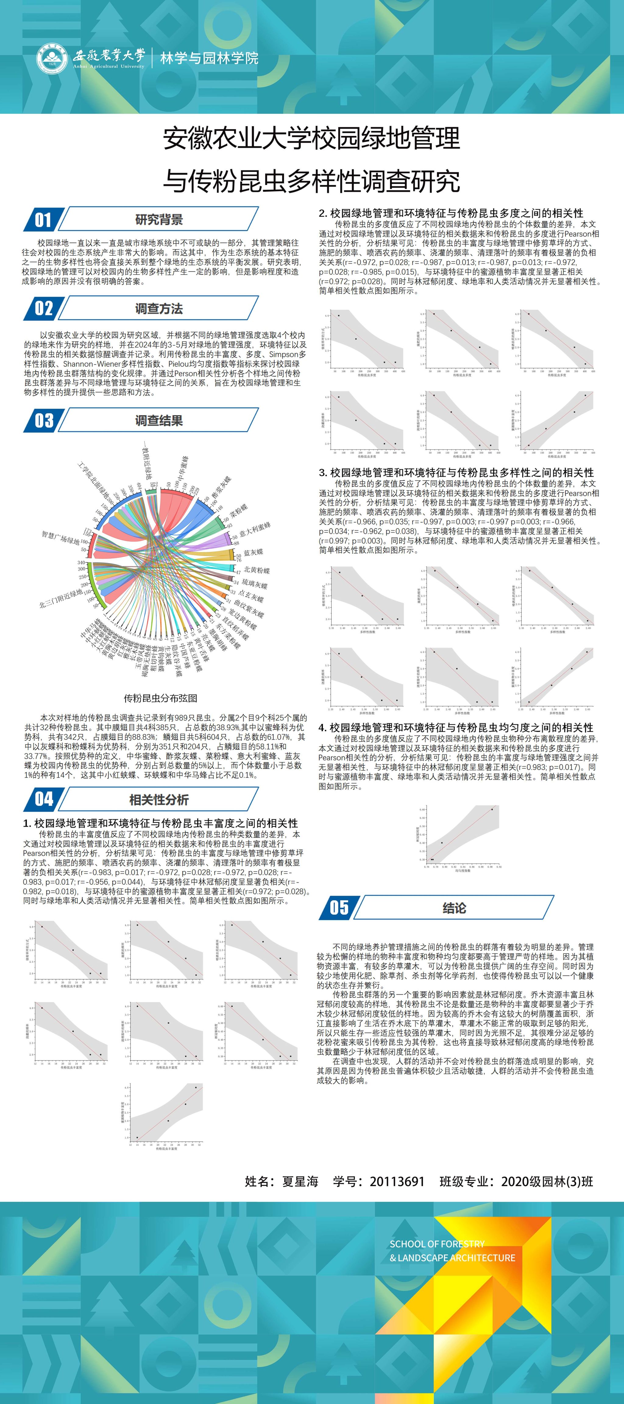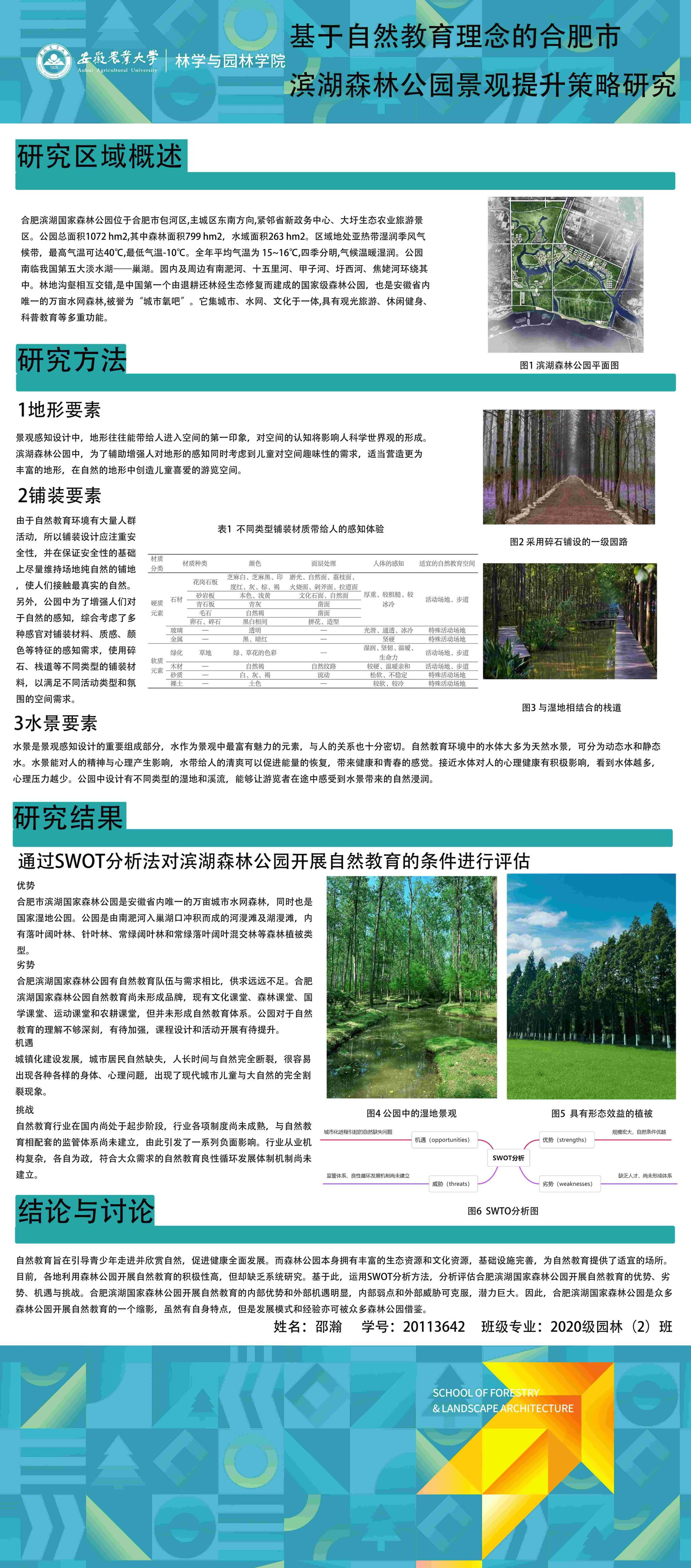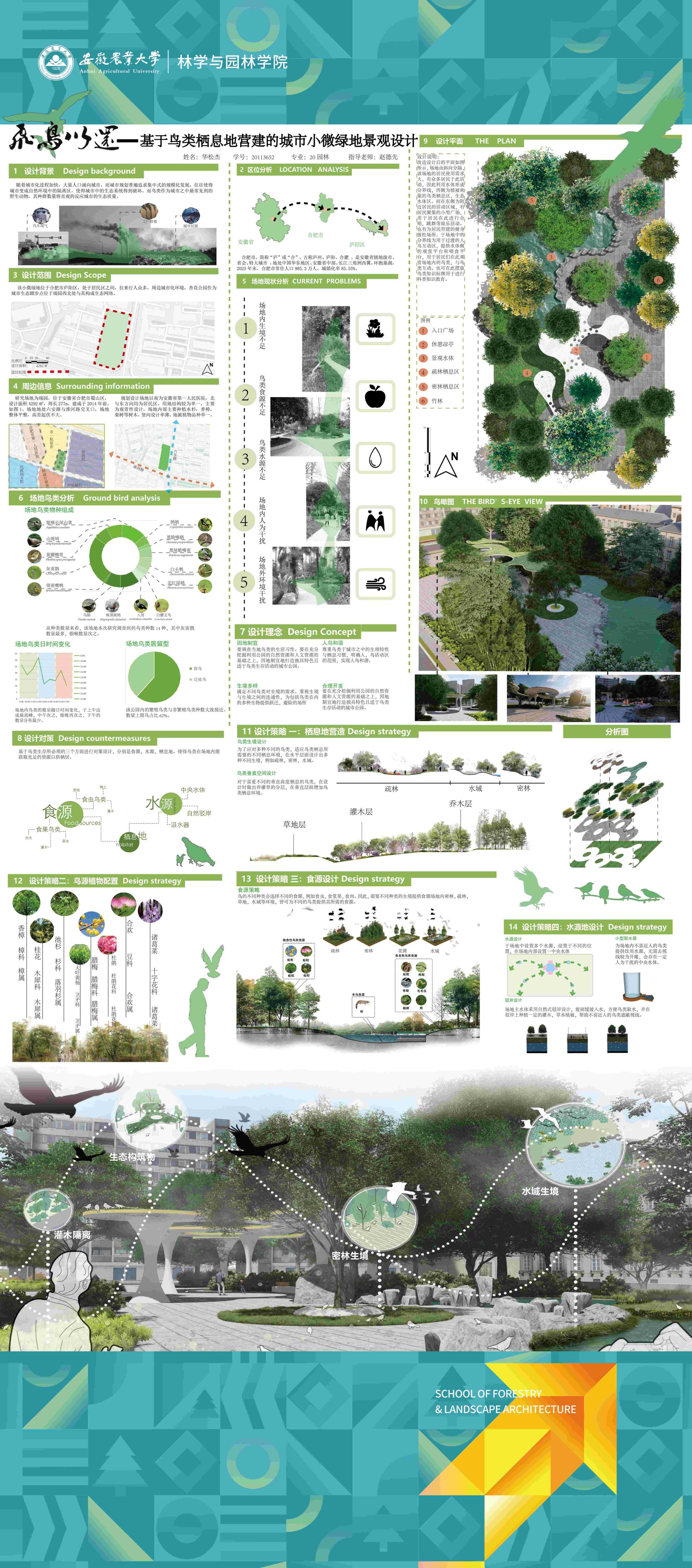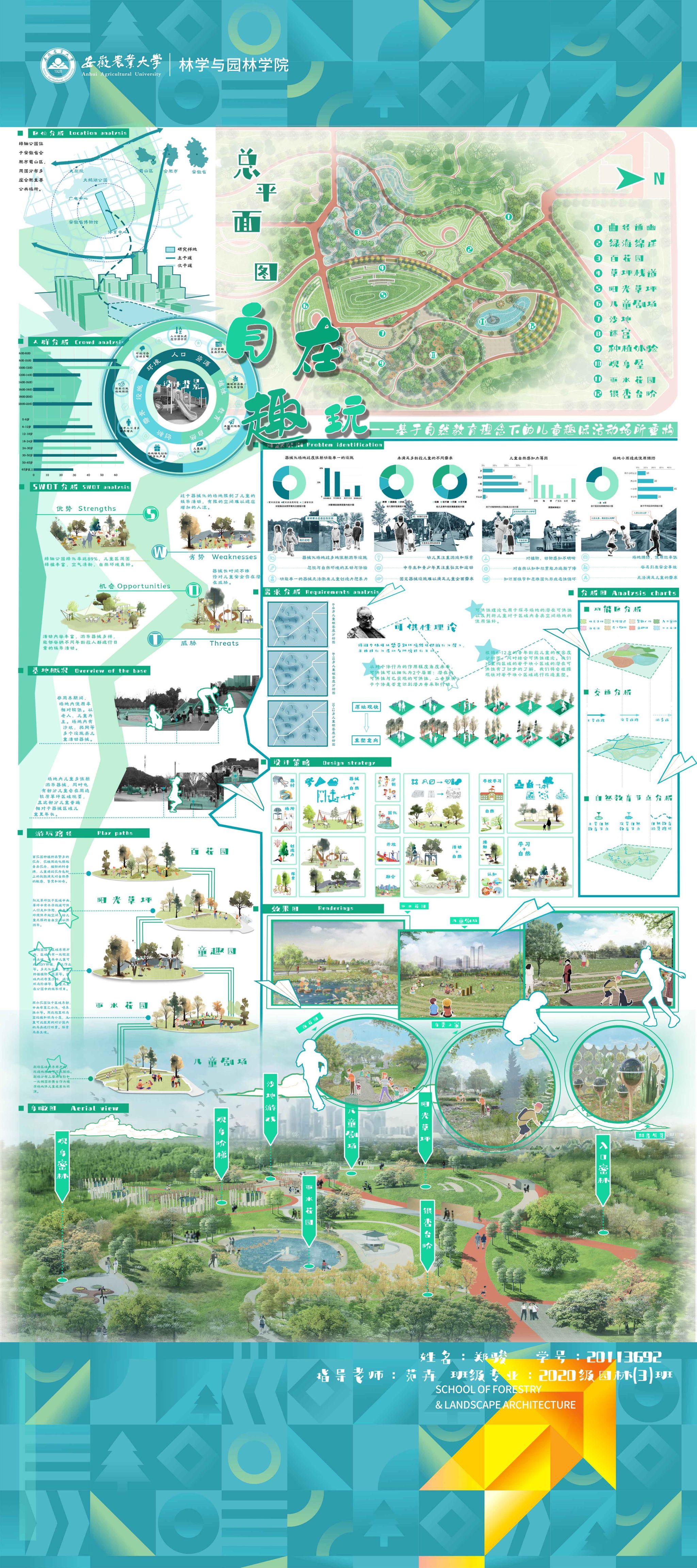园林专业为国家级一流专业,突出农、理、工、文、艺多学科交叉的多元联动培养优势,在风景园林规划设计、园林植物造景应用、风景园林工程建设与管理、园林植物繁育与栽培等方向处于国内同类院校的先进水平。本次本科毕业设计(论文)展包括园林规划与设计、园林植物种质资源创新、园林植物生理生态、园林自然教育、园林植物遗传育种等多个方向。