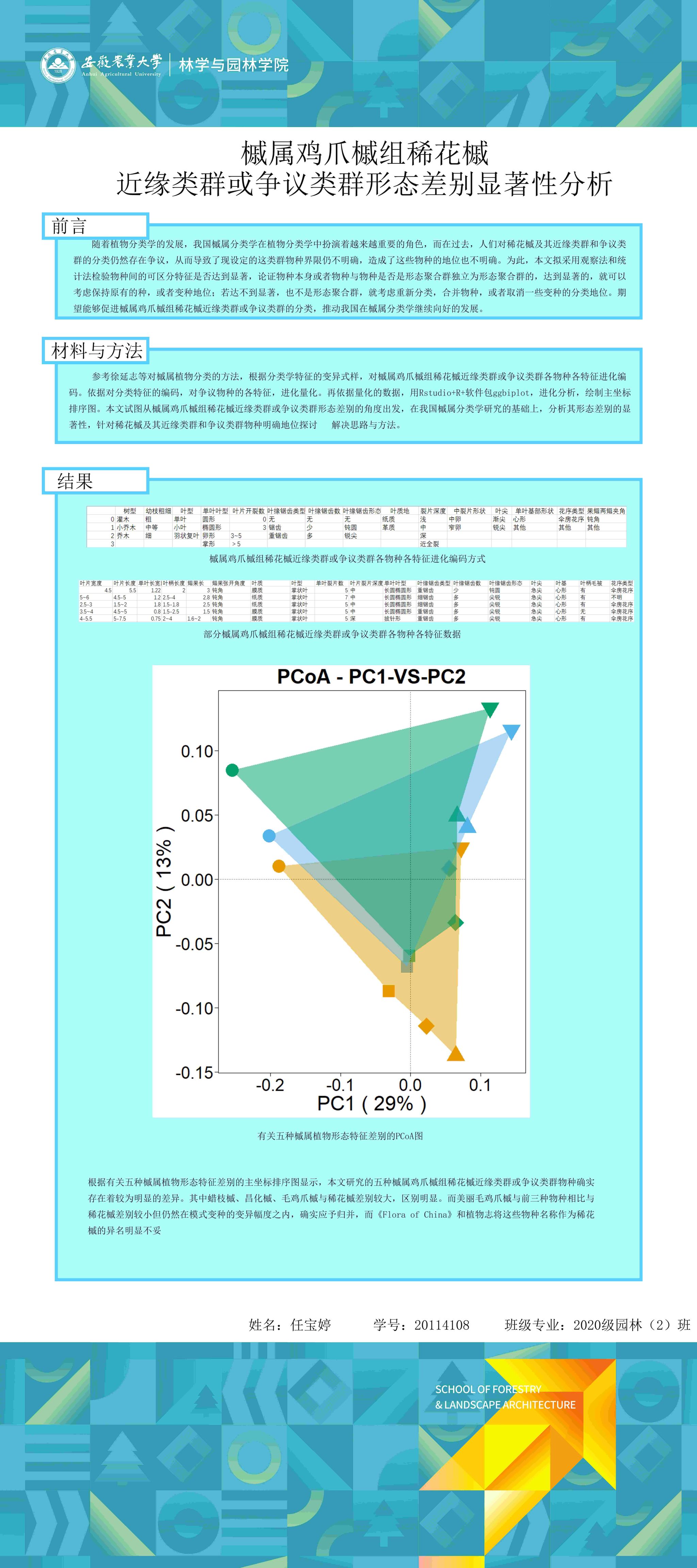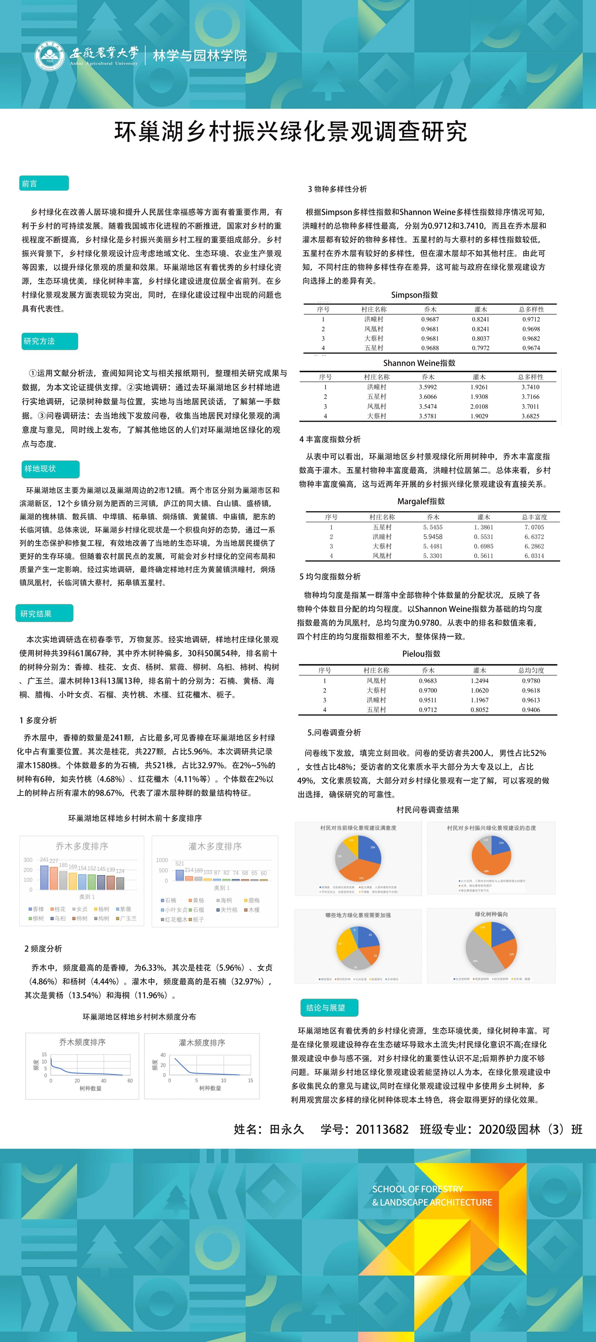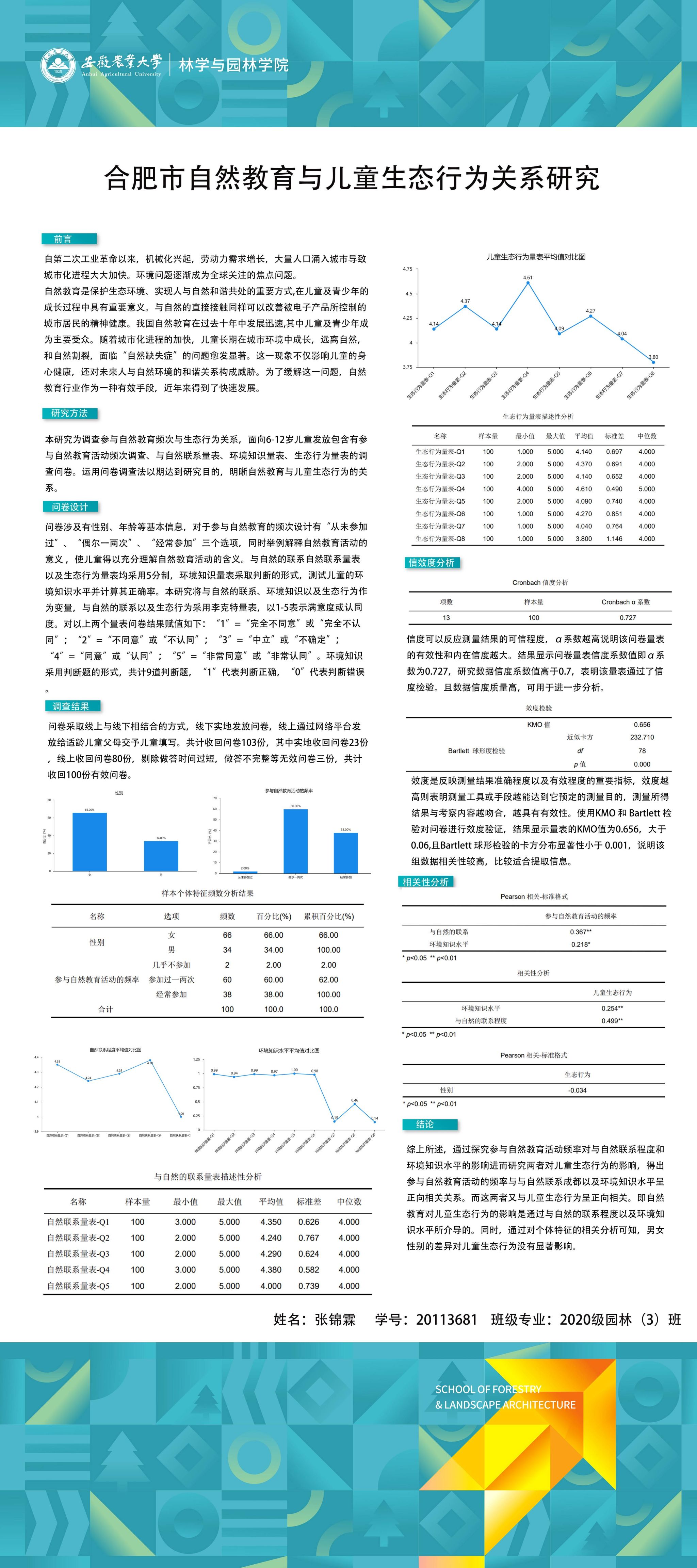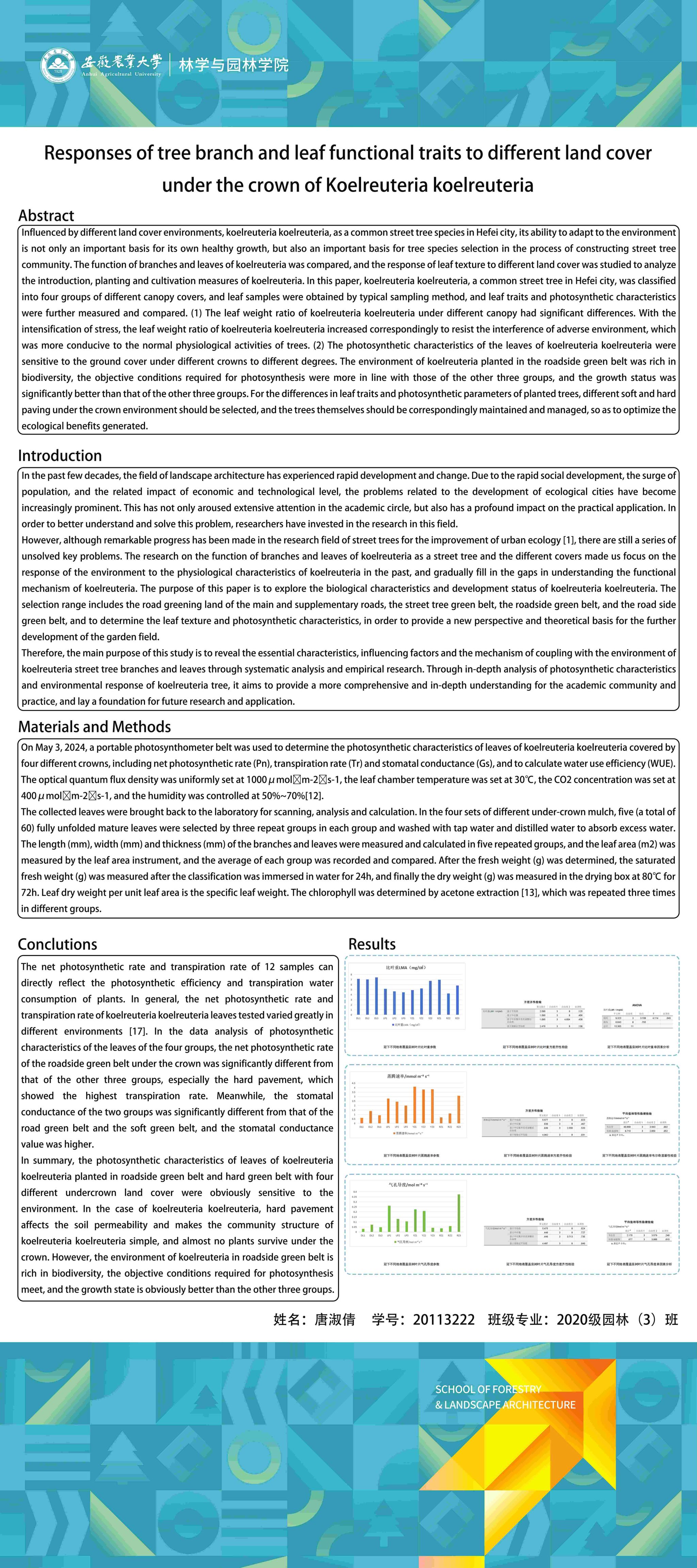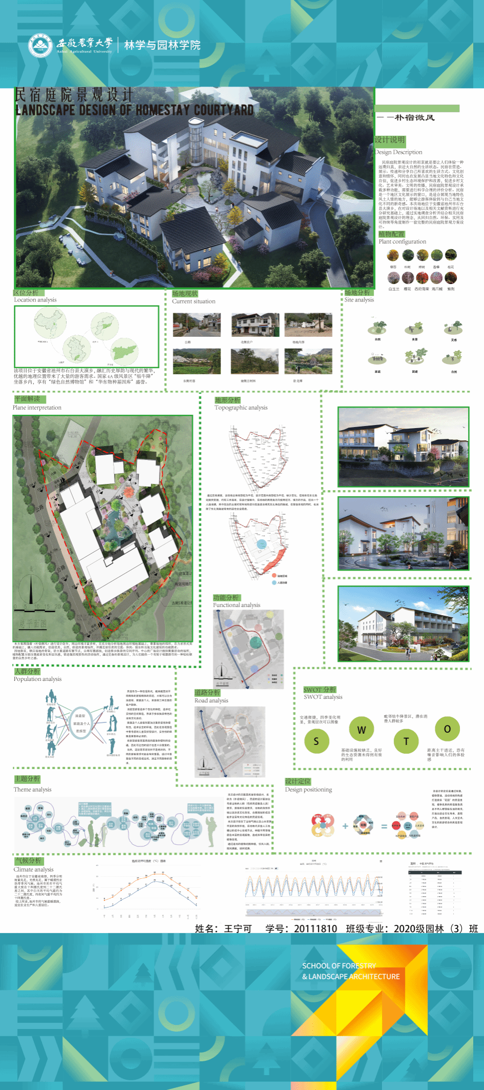 园林专业为国家级一流专业,突出农、理、工、文、艺多学科交叉的多元联动培养优势,在风景园林规划设计、园林植物造景应用、风景园林工程建设与管理、园林植物繁育与栽培等方向处于国内同类院校的先进水平。本次本科毕业设计(论文)展包括园林规划与设计、园林植物种质资源创新、园林植物生理生态、园林自然教育、园林植物遗传育种等多个方向。